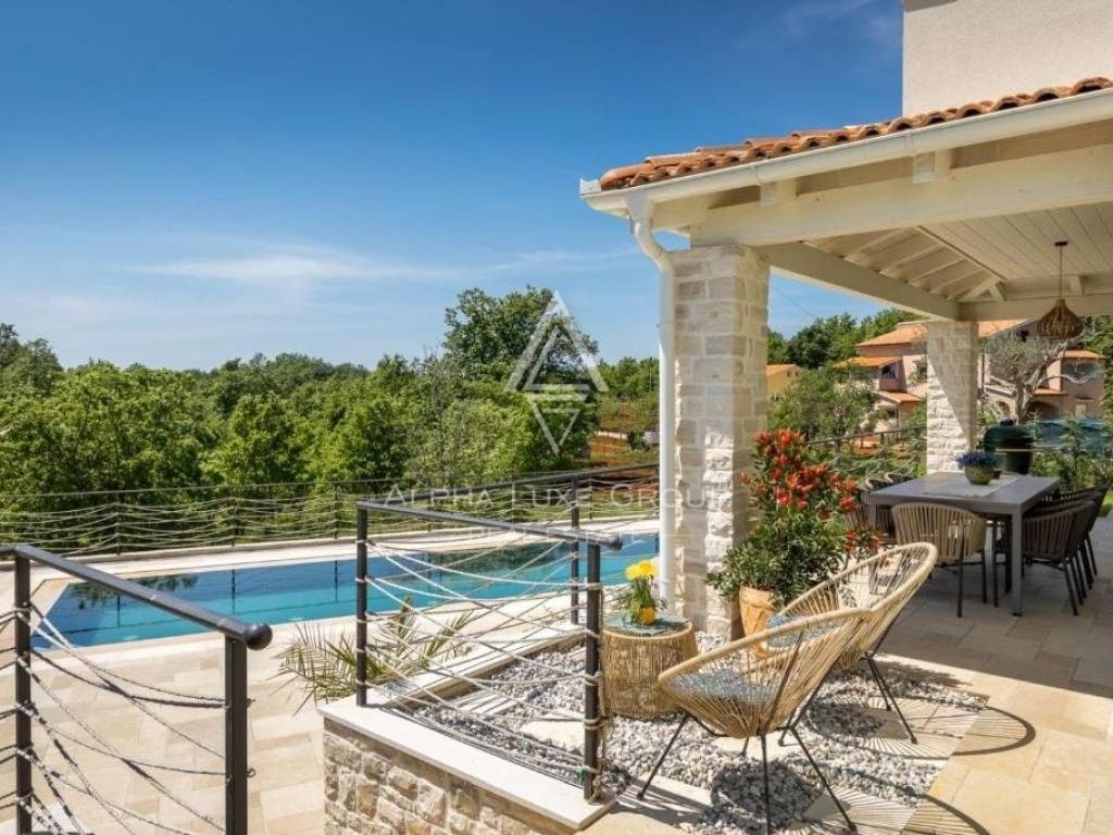 Experience the perfect blend of rustic charm and contemporary luxury with this stunning stone villa, located a mere 15 km from Poreč's vibrant city center. Constructed in 2021, this fully furnished property is a masterpiece of design and comfort.