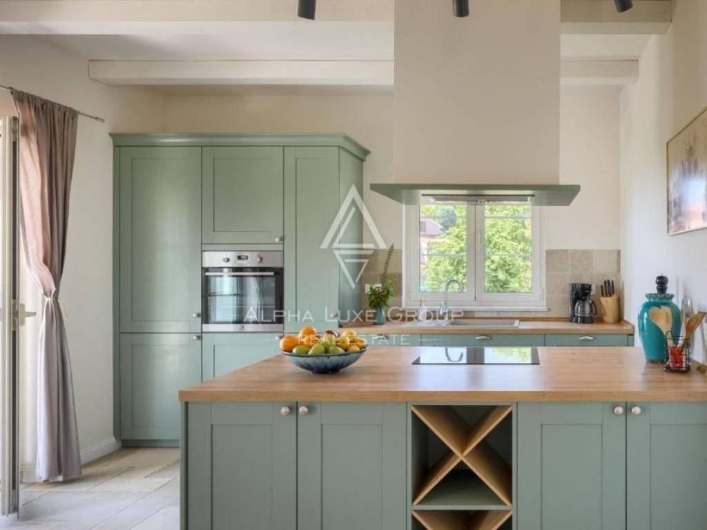 Outside, a 31 m2 swimming pool and sun deck await in the beautifully landscaped and enclosed garden. The stone elements of the villa's exterior enhance its grandeur, making it an architectural gem.