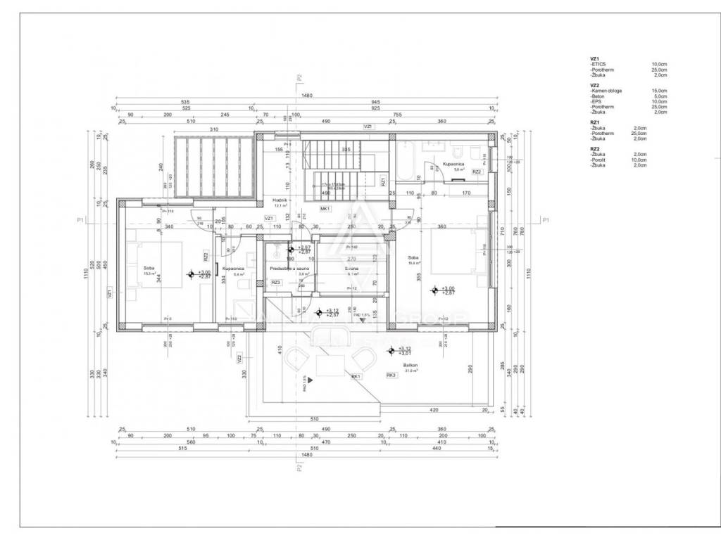 The first floor features two large bedrooms, one with an en suite bathroom and terrace access, and the other with a separate bathroom. Additionally, this floor includes a sauna with an antechamber and direct access to the terrace, offering ultimate relaxation.