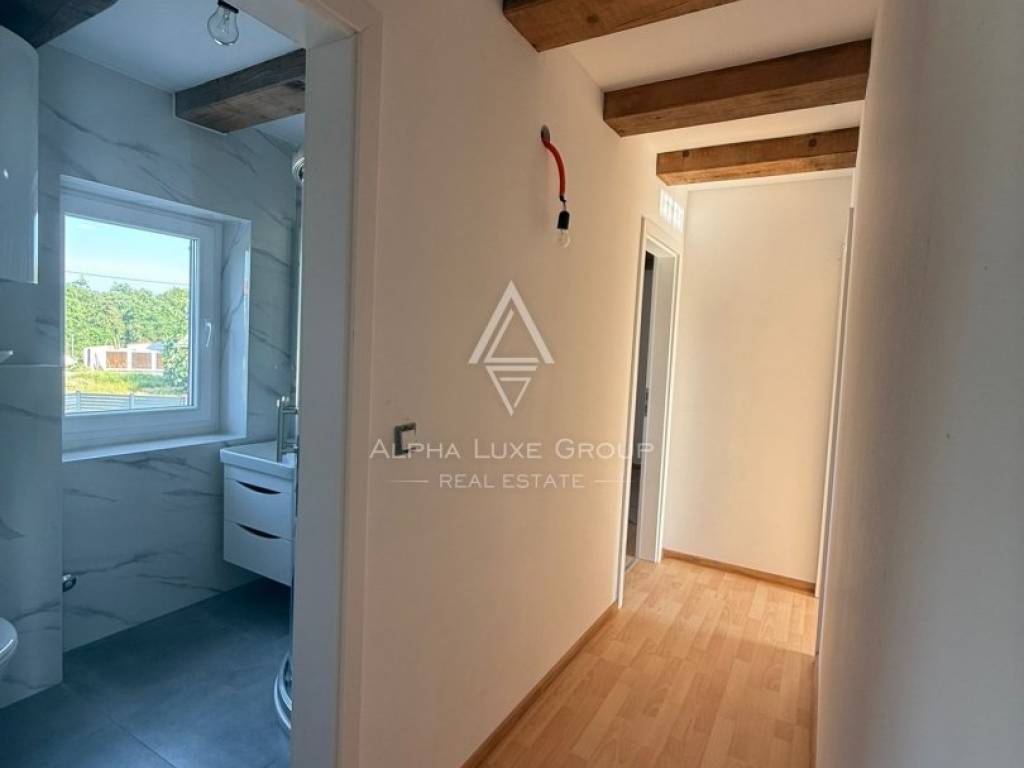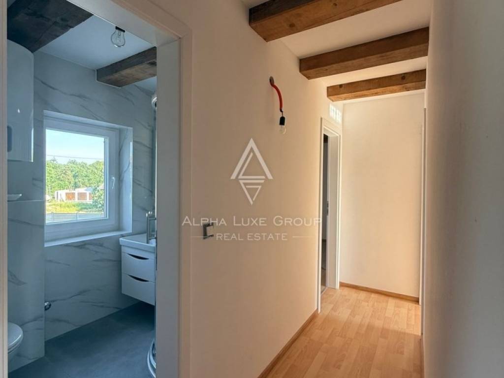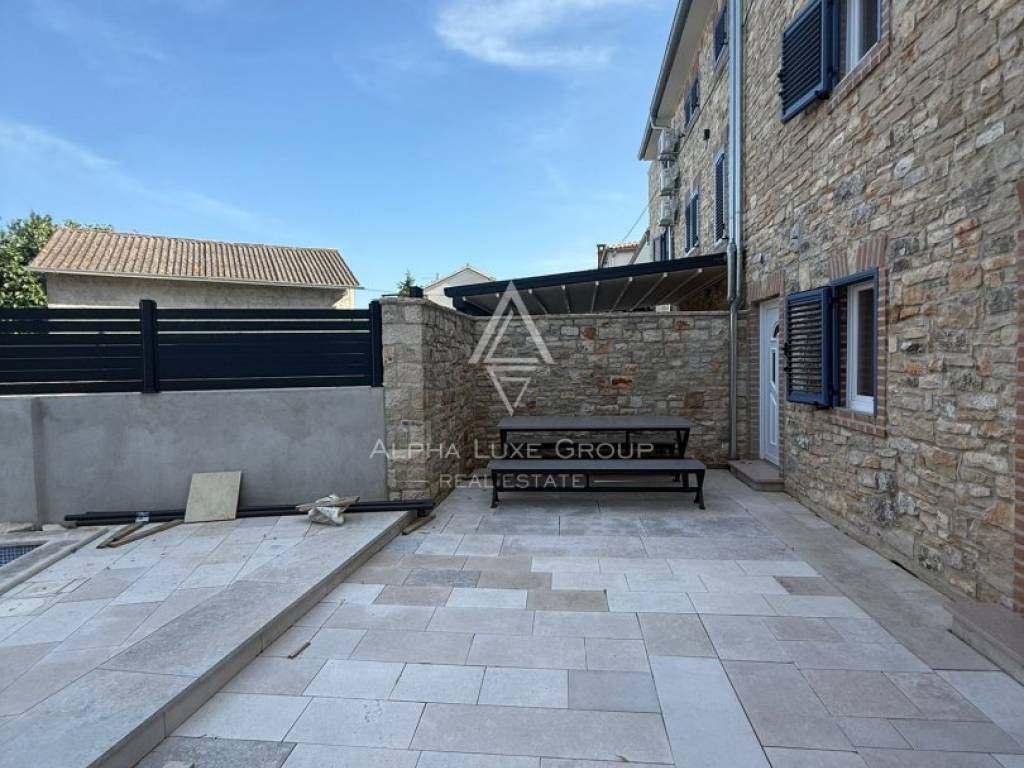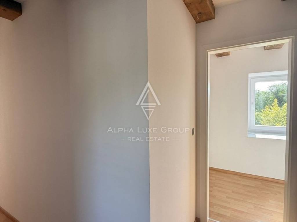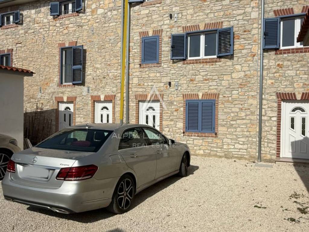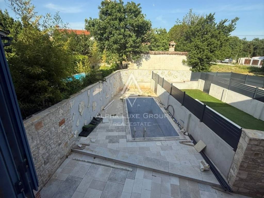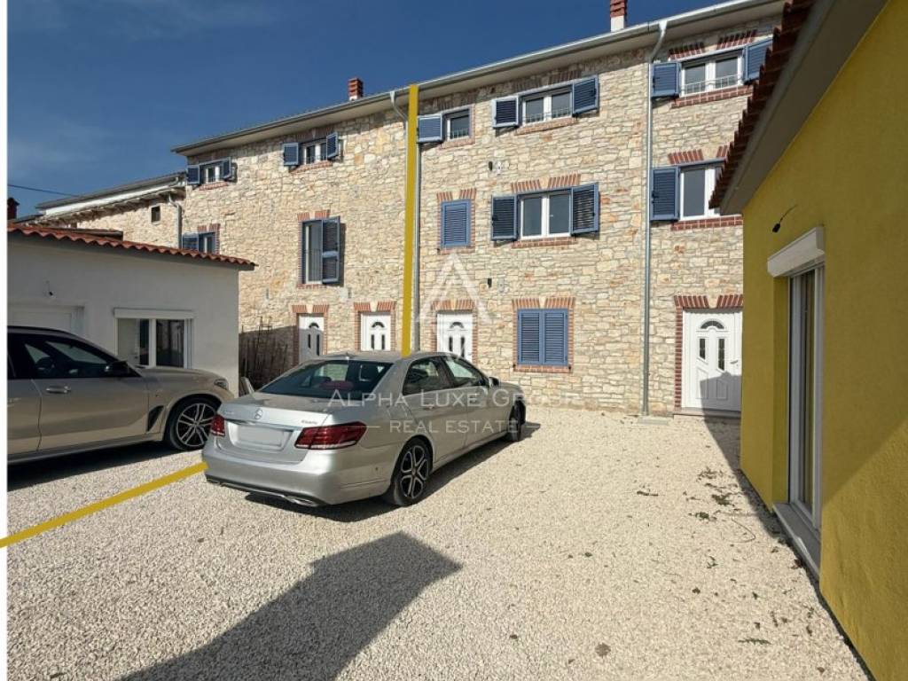 Located in a peaceful cul-de-sac in the traditional Istrian village of Juršići, this newly constructed stone terraced house blends timeless character with modern comfort. Spread over three levels and offering 140 m² of living space, the home features a welcoming living room, kitchen with dining area, and a guest toilet on the ground floor. The open layout leads directly to a sun-soaked terrace and a private 15 m² swimming pool, perfect for outdoor leisure and relaxation.