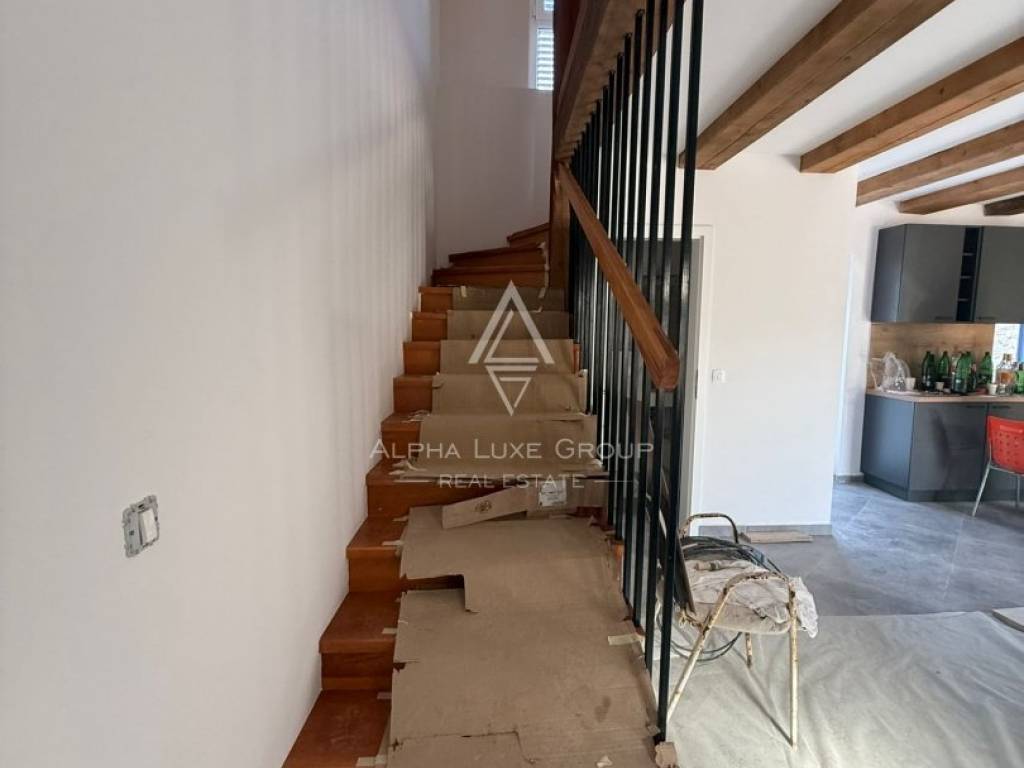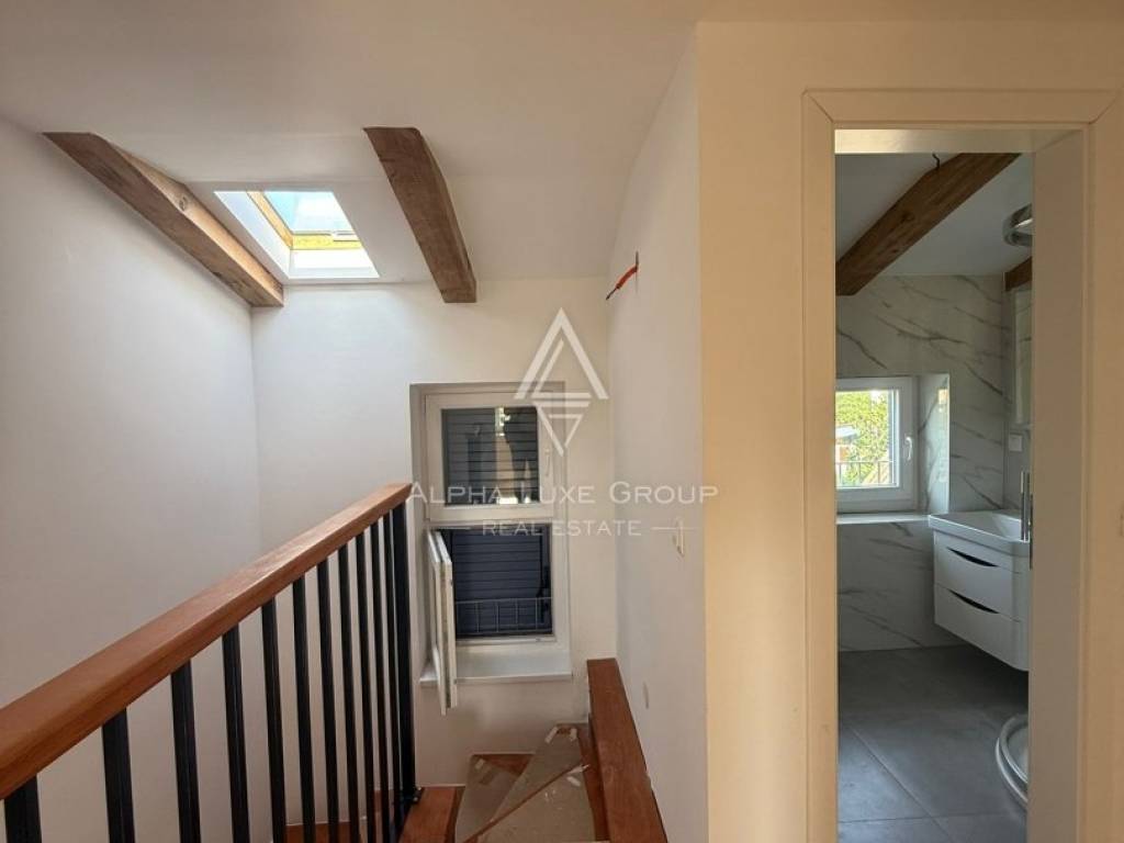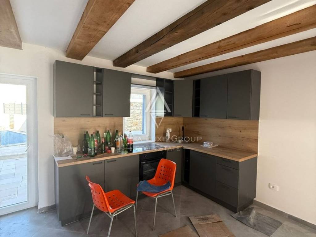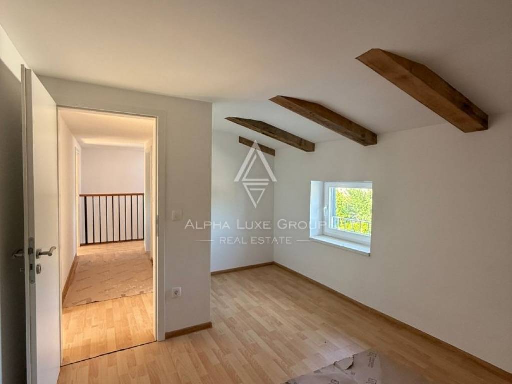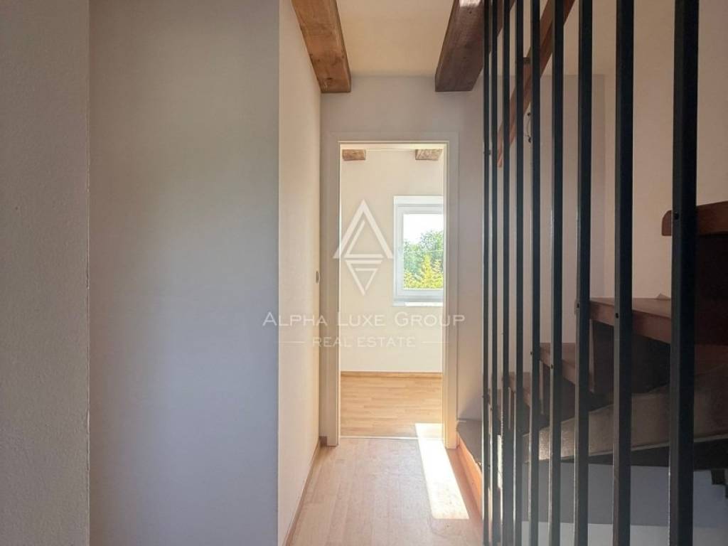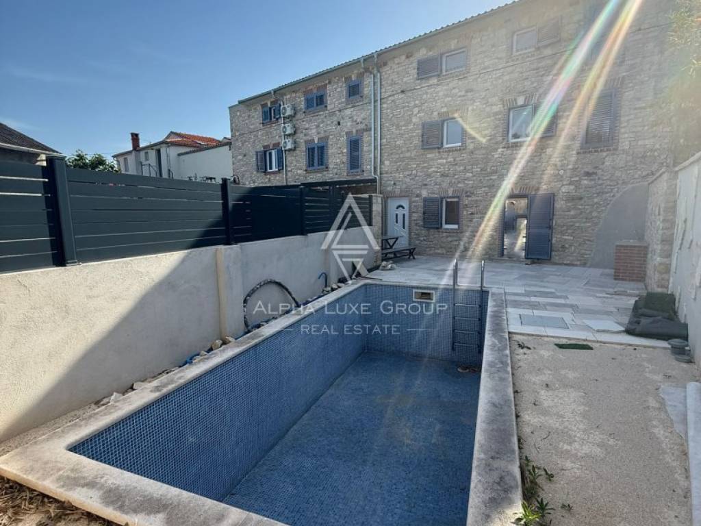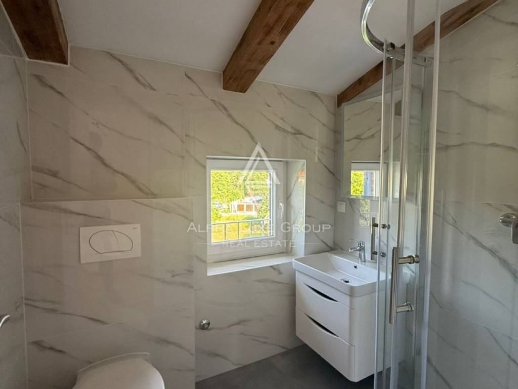 Located in a peaceful cul-de-sac in the traditional Istrian village of Juršići, this newly constructed stone terraced house blends timeless character with modern comfort. Spread over three levels and offering 140 m² of living space, the home features a welcoming living room, kitchen with dining area, and a guest toilet on the ground floor. The open layout leads directly to a sun-soaked terrace and a private 15 m² swimming pool, perfect for outdoor leisure and relaxation.
