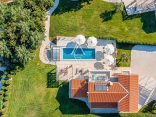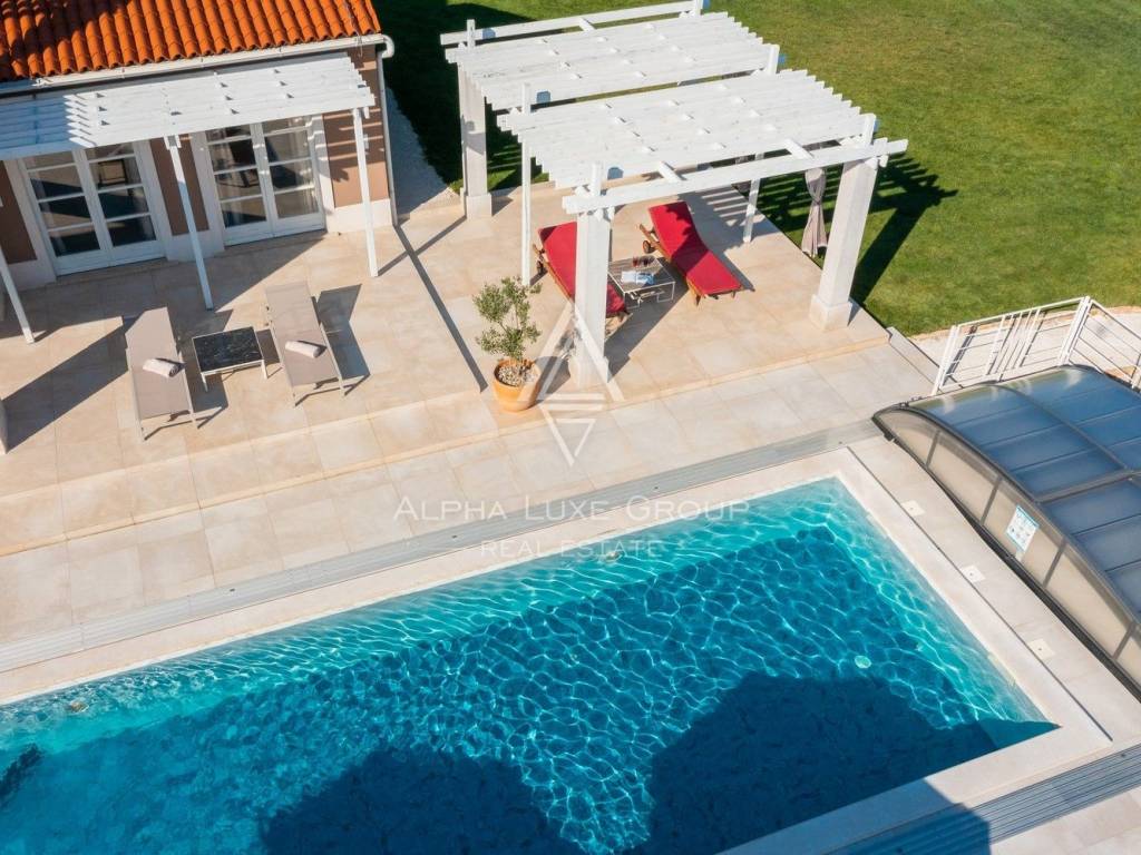 The villa offers numerous premium features, including a Mediterranean garden, covered parking, a security system with cameras and alarm, underfloor heating throughout, and air-conditioning in every room—ensuring comfort in all seasons. This property represents an exceptional opportunity for buyers seeking luxury living in a tranquil Istrian setting.