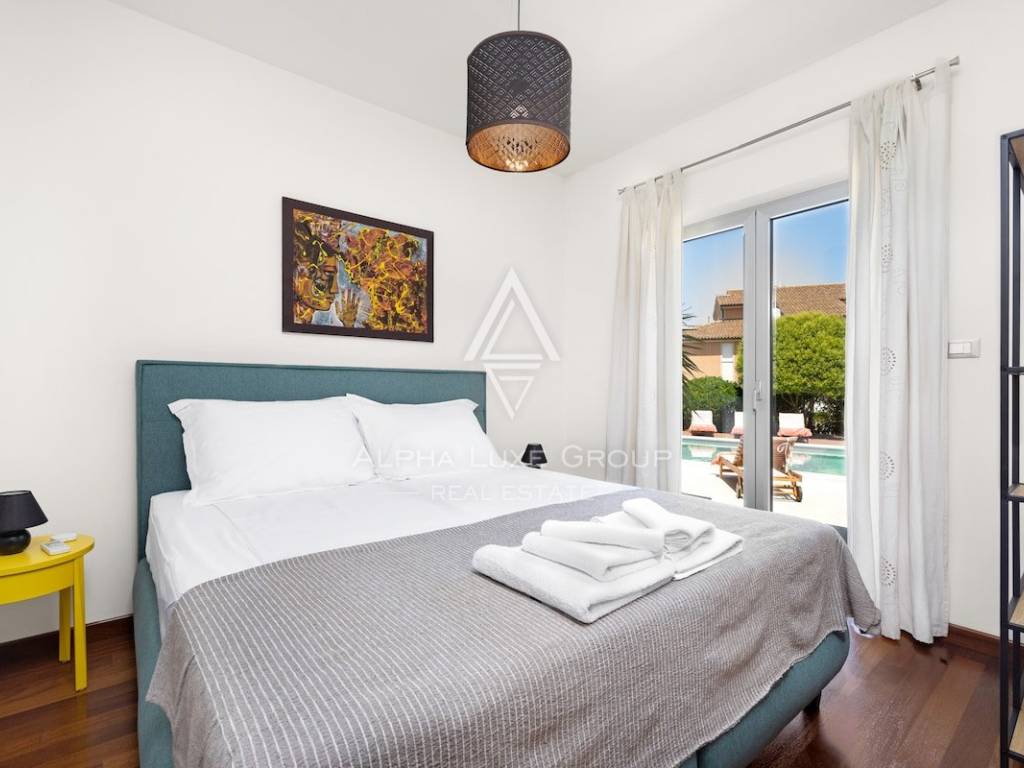 The outdoor area is designed for relaxation and entertainment, with Mediterranean landscaping, a summer kitchen, a barbecue zone and several seating terraces. The heated saltwater pool with an automatic cover ensures year round comfort. High quality materials, underfloor heating, air conditioning, ALU carpentry, an alarm system, smart shutters and an A+ energy rating highlight the villa’s outstanding construction quality.