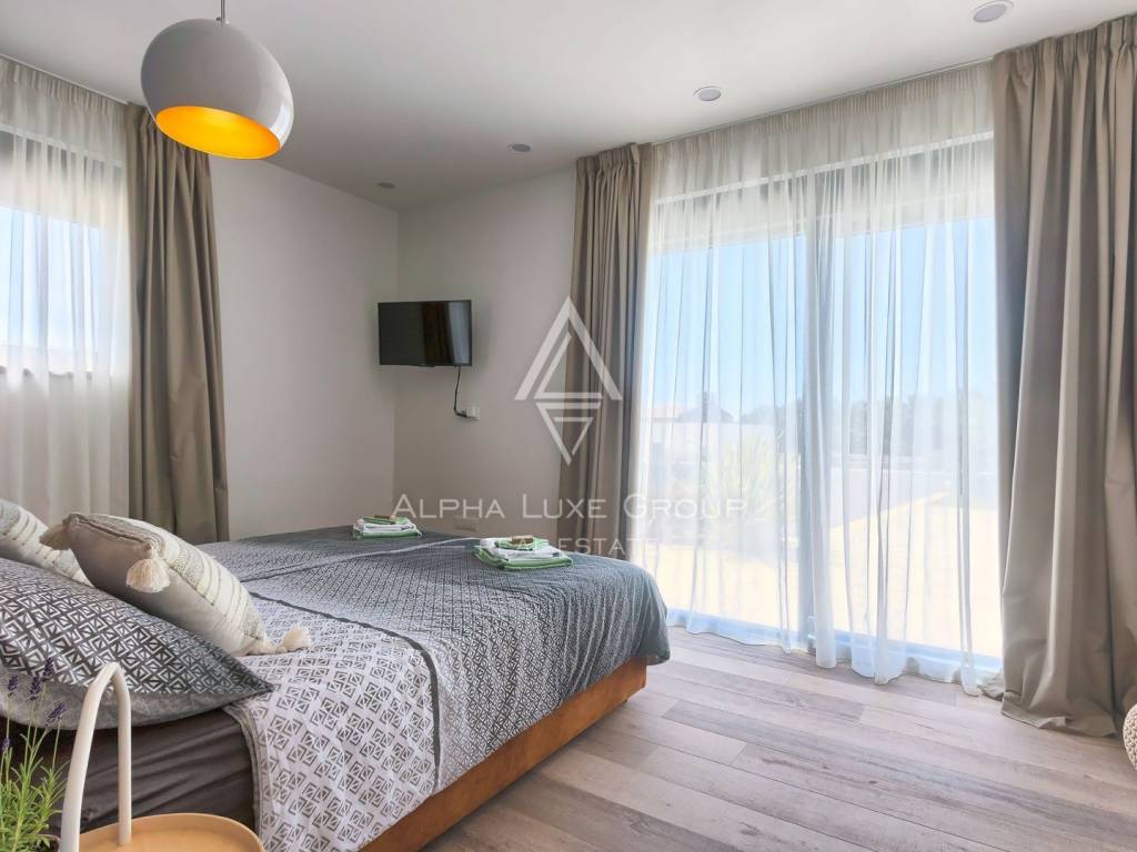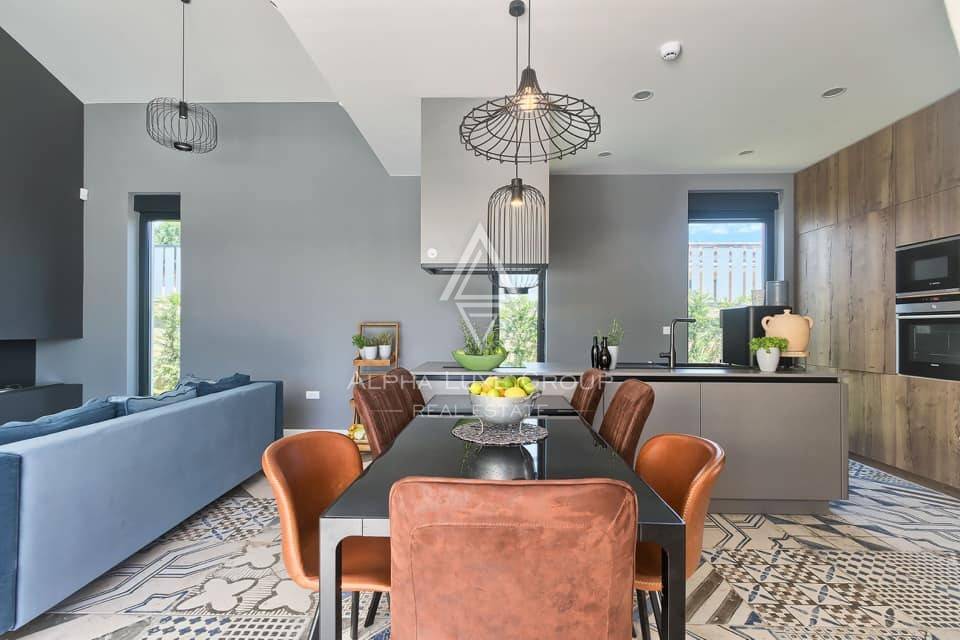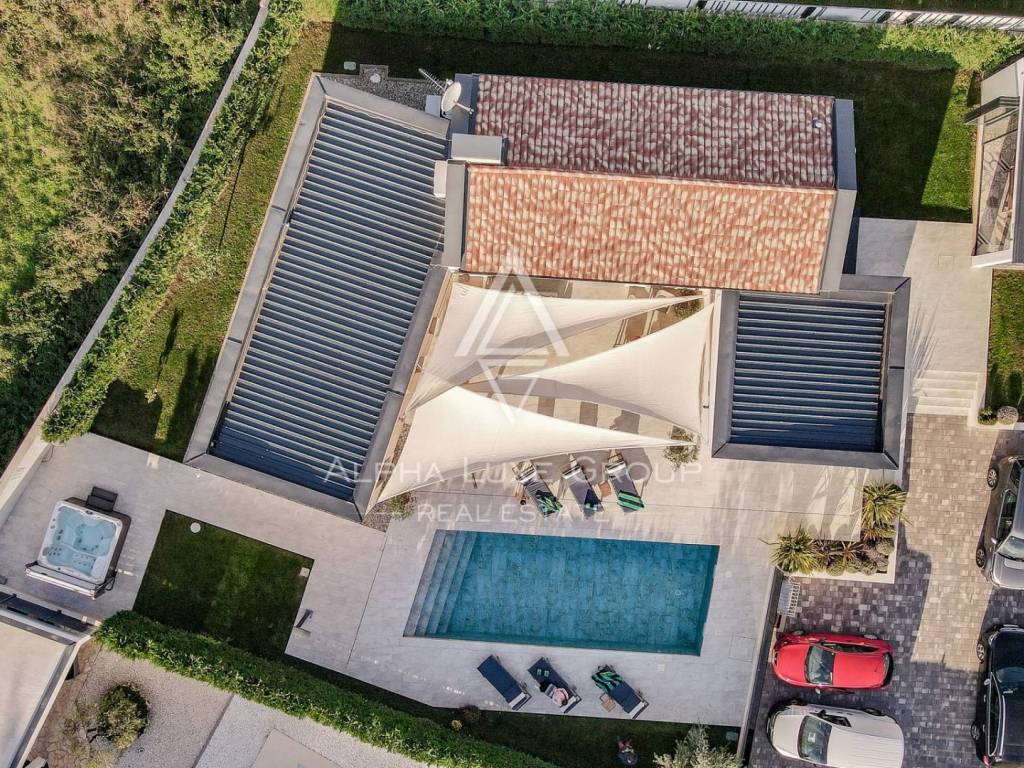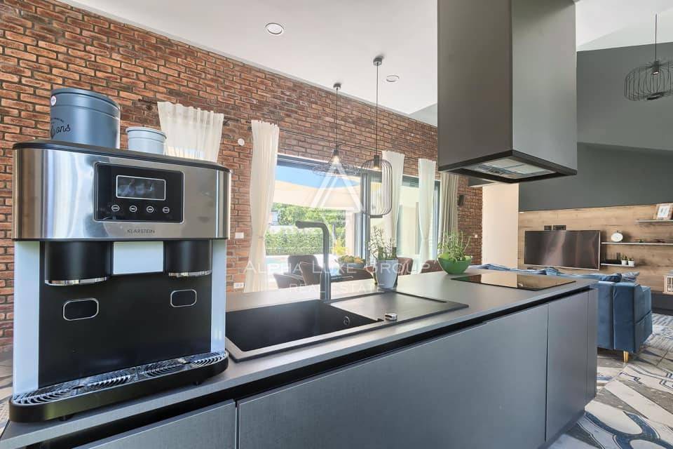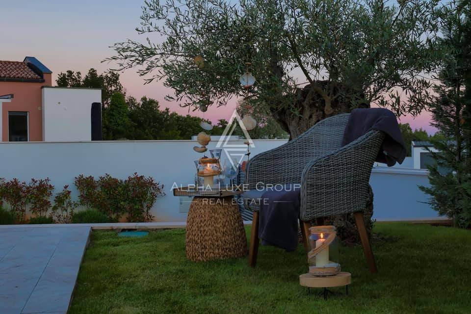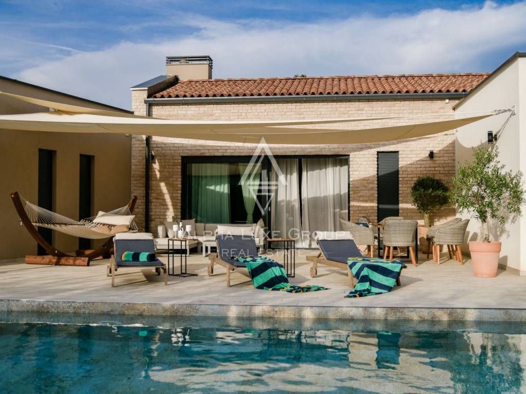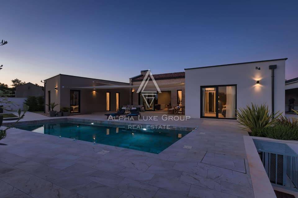 This refined villa for sale near Vodnjan offers an exceptional blend of modern comfort, privacy and elegant contemporary design. Set in a quiet, landscaped environment only minutes from the town, the property was built in 2020 using high-quality materials that enhance both aesthetics and functionality. The single-storey layout extends across 148 m², including 123 m² of interior living space and an additional 25 m² dedicated to a fully equipped summer kitchen.