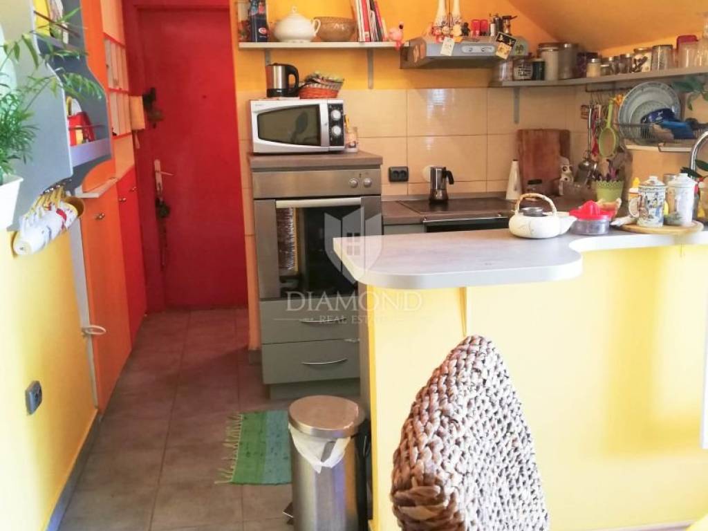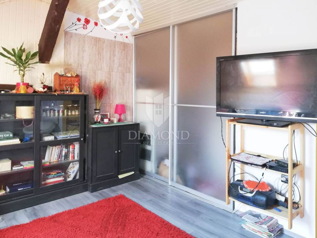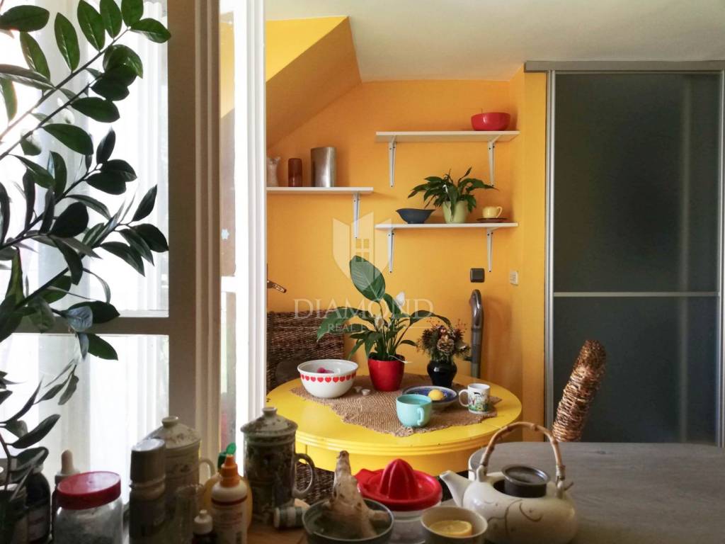 It is located in the attic of a residential building with a total of three floors, which ensures exceptional privacy, peace and a feeling of isolation from the city bustle. The apartment has a storage room, and there is also a courtyard for the common use of the tenants.