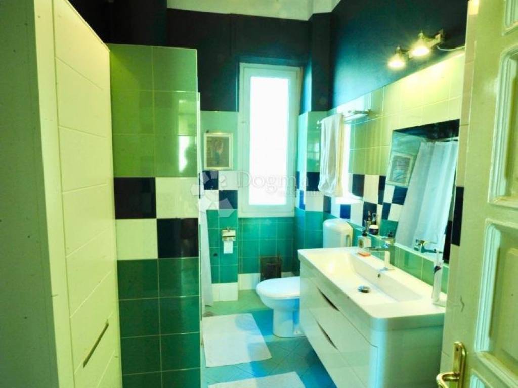 A beautiful and rare old traditional apartment building spared from WW2, overlooking the old town and the sea, 150 meters from the bridge and the heart of the old city. This apartment is on the 3rd floor walk up with a possible elevator in the future, it has a surface of 107 m2 and a ceiling height of 3,20m, it is very sunny. A long entrance corridor with black and white checker tiles like a carpet with a big closet at the end, it splits the apartment in two. The 4 main rooms have oak flooring. The 3 main rooms facing South are connected with an enfilade of double doors like in chateaux with a balcony in the middle and the view of the old city. Consist of one bedroom at the entrance of about 20 m2, a master bedroom of 30 m2, a dining room, a 25m2 living room. The apartment totally renovated with a pleasant kitchen and its balcony to the back of the building, with double sink, gas cooktop, electric oven, big new stainless Samsung fridge/ freezer. A renovated bathroom with large sink, shower, toilet, washing machine, electric wall water heater and shelves. The apartment has 2 convectors for heat and cold and double windows making it totally silent from the street. Also you have a 12 m2 outside closet for suitcases, bicycles etc.. Plus another large storage in the attic of the building. Intercom at building entrance. This building is equipped with cable internet, the fastest available. It is also very easy generally to park your car in front or around of the building most of the time.