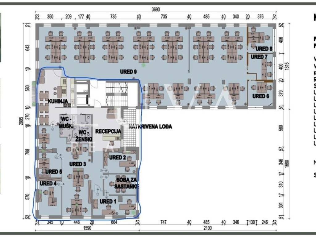 A spacious commercial space on the second floor of an office building in Zagreb is for rent.
