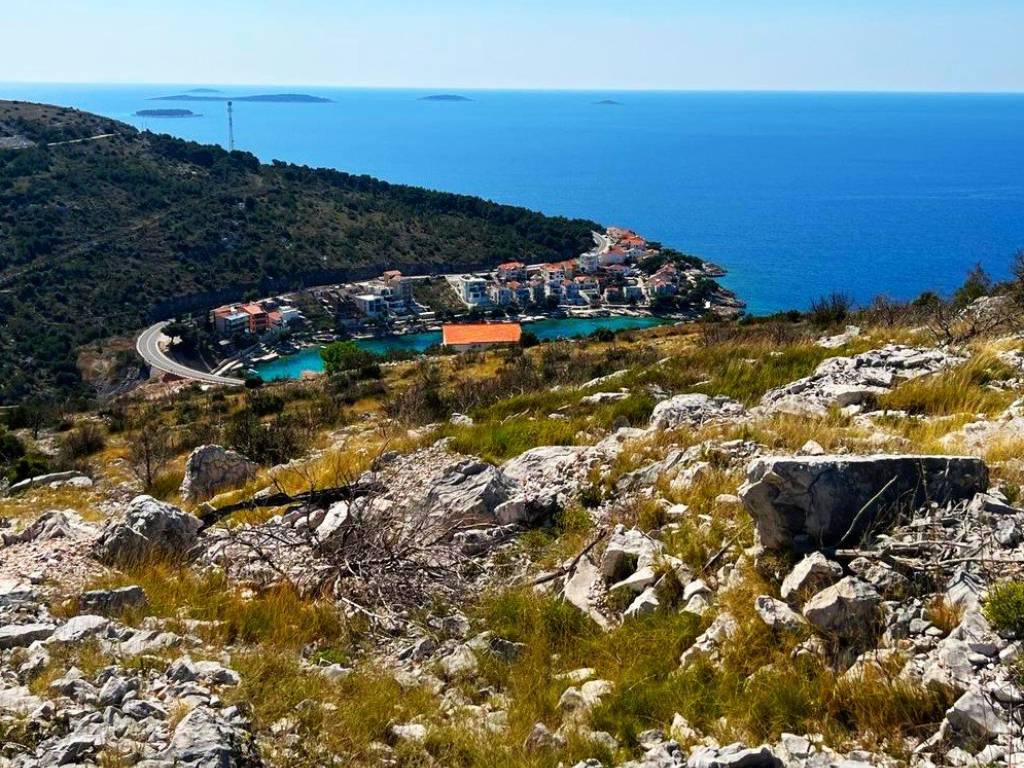 Key advantages: total land area: 5,339 m 600 m from the sea quiet and exclusive location near Primošten perfect open panoramic view of the sea and archipelago project for a modern villa with a swimming pool building permit in progress ideal for a luxury private villa or a premium investment project exceptionally rare combination of large land area, view, and prepared documentation Land of this size, with such a view and an already initiated permitting process, is becoming almost impossible to find on the market, especially near Primošten.