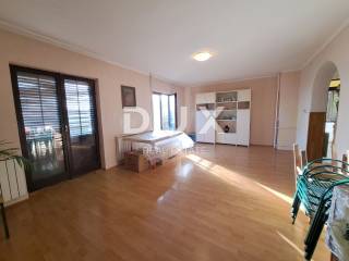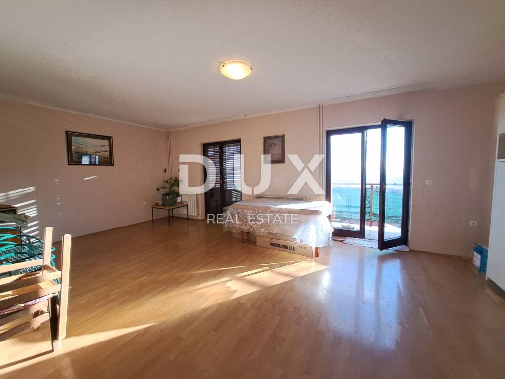 The apartment consists of a spacious living room, two bedrooms, a large kitchen, a bathroom, a toilet and a balcony that stretches along the entire house. The terrace offers an open view of the Kvarner Bay, which makes this property extremely attractive. With minimal intervention, the space can be converted into a three-bedroom apartment with a living room.