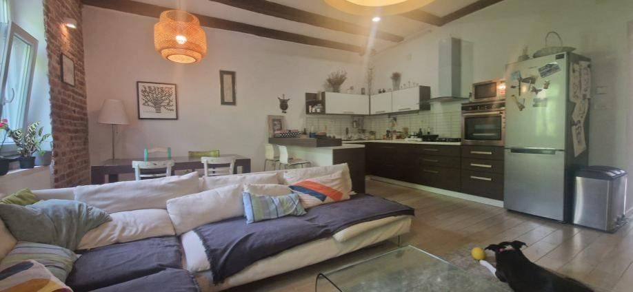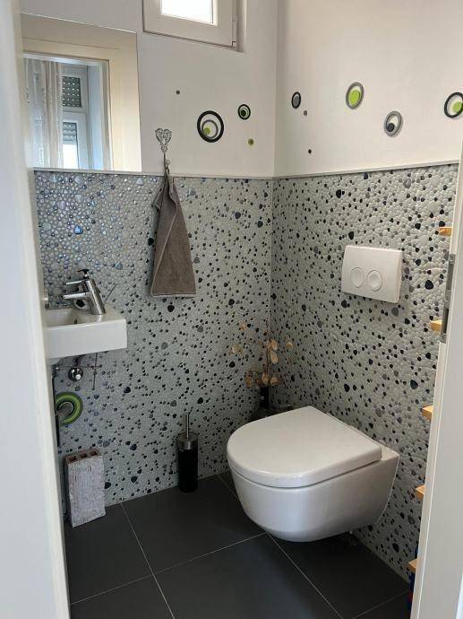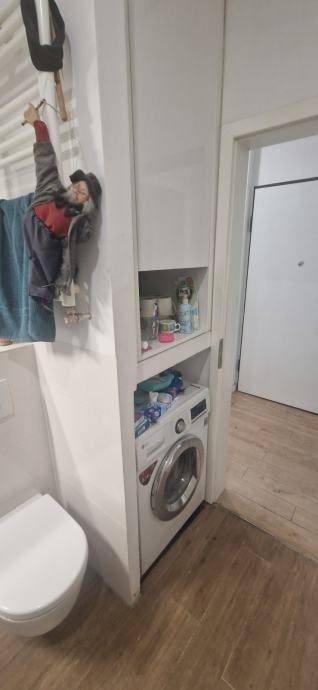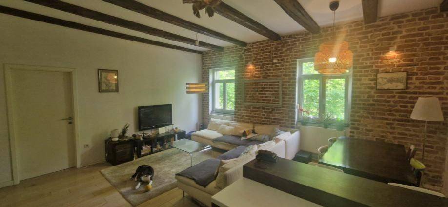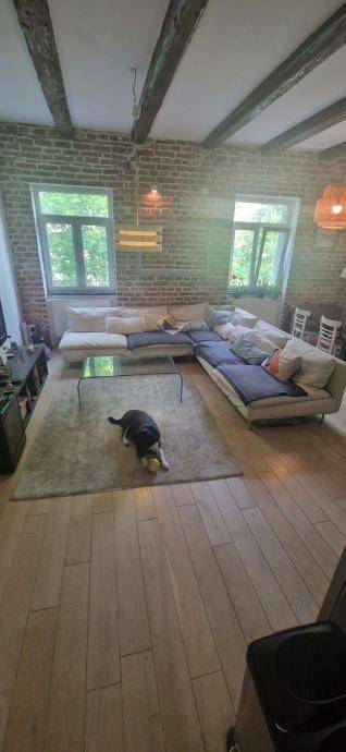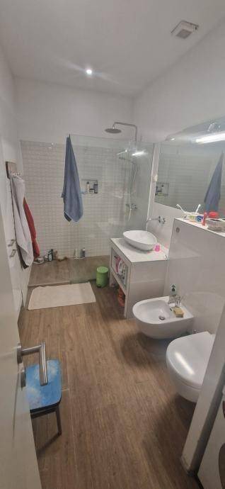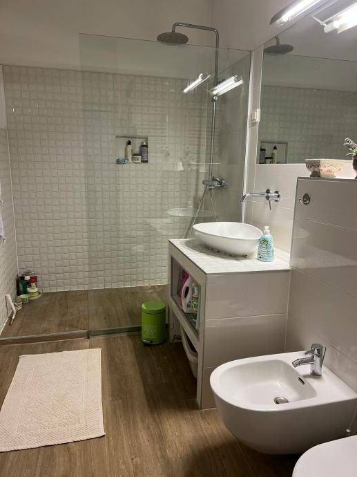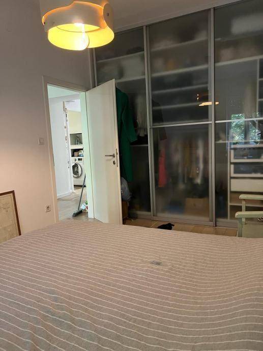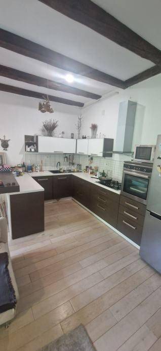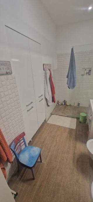 Četverosobni stan koji je sam na cijeloj etaži. Sastoji se od tri spavaće sobe, dnevnog boravka sa kuhinjom i blagovaonom, gostinskog wc-a, kupaone sa wc-om, balkona i hodnika. Kvadratura nije navedena u vlasničkom listu, cca 90 m2. Izuzetno dobro stanje, kompletno je renoviran.