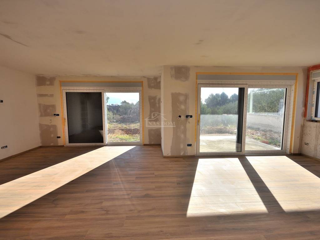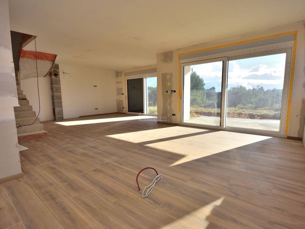 Kuća je pažljivo projektirana, s odličnim rasporedom prostorija s puno prirodnog svjetla a nalazi se na mirnoj lokaciji u okruženju modernih obiteljskih kuća i vila, 550 m od plaže a 1000 m od centra mjesta, idealna je za miran obiteljski život ali i kao investicija.