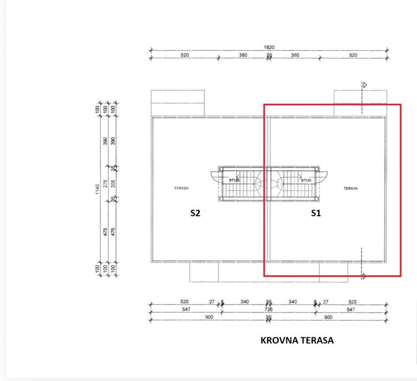 - staklene ograde na terasama na katu i krovnoj terasi