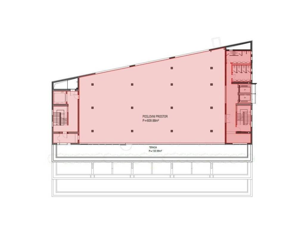 This attractive office space is located on the 4th floor of an office building and covers almost 610 m² of internal space, with an exceptionally valuable and spacious terrace of 130 m², which is one of the main advantages of this space. The space is in the rau-bau phase with ceramics installed. Access is provided by a passenger elevator or main staircase on the east side, while a freight elevator and staircase are available on the west side, ensuring functional and efficient access. Thanks to the large square footage, open concept and exceptional terrace, the space offers wide possibilities for various business activities and is available immediately. The location is very busy and well connected, with direct access from the Split–Dugopolje expressway. The center of Split is 9 km away, Solin 3 km, and Dugopolje 16 km, while the largest shopping centers, Mall of Split and City Center One, are also in the immediate vicinity.