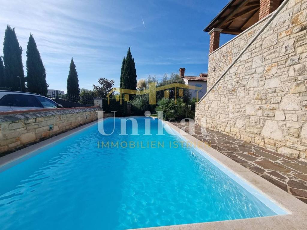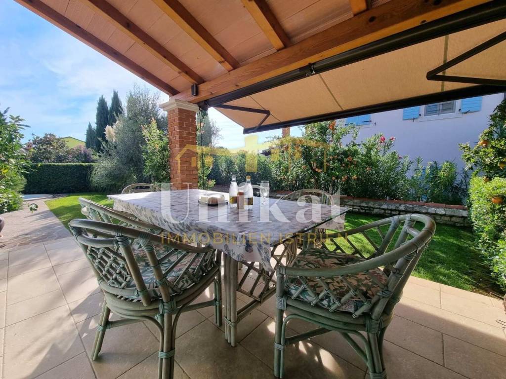 Semi-detached house in a quiet location, 1 km from the sea and 9 km from the town of Poreč. The house consists of a ground floor and an upper floor with a living area of 135 m2 of enclosed space, and 155 m2 including terraces.