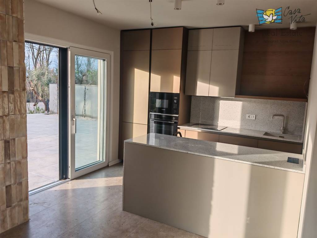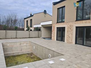 Svakako treba još i dodatne karakteristike i materijale naglasiti: Troslojna stakla pvc, stolarija Roplast, električne žalozine, komarnici, depurator vode, 3 vanjske kamere, kompletno ograđeno zemljište, priprema za kapiju parkinga zajedno s projektom kapije, priprema za toplinsku pumpu za bazen i priprema za el. pokrivač bazena, navodnjavanje vrta, vanjska ljetna kuhinja, vrtni namještaj, vanjski solarni tuš, kuhinja arredo 3 made in italy, fenix stranice "anti graffio anti finger", kvarc plohe te kompletna Bosch aparatura.