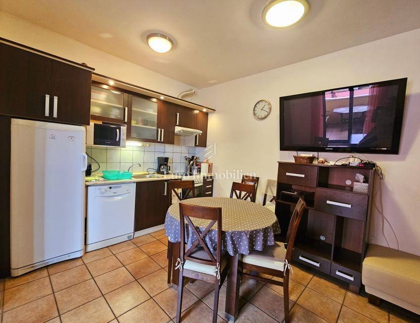 The apartment consists of an entrance hall, pantry, kitchen and living room in an open-plan concept, bathroom, and one bedroom. From the living room there is access to a terrace with an open sea view, ideal for relaxation.