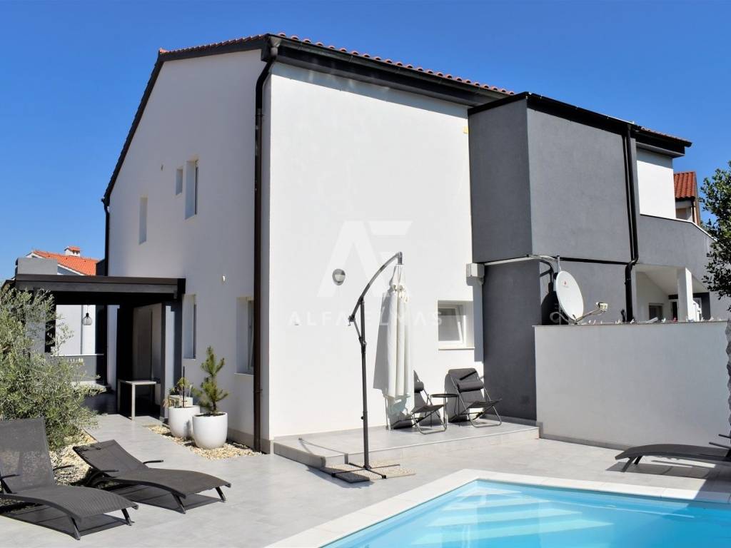 Soline, modern semi-detached house with two residential units built in 2005. with pool and sea view!! One residential unit has a living area of ​​110 m2, a semi-detached house has floors P+1. On the ground floor of a modern semi-detached house there is a hallway, living room, kitchen, dining room, toilet, bathroom and storage room. Internal stairs lead to the first floor of the house where there are three bedrooms and a bathroom, a terrace with a wonderful view of the sea!! The house in Soline has a landscaped garden of 100 m2 where there is a swimming pool with a sun deck, a spacious terrace with a covered kitchen and a barbecue. The modern semi-detached house was completely renovated in 2020, the equipment of the semi-detached house includes top quality ceramics, sanitary ware, TV, a fully equipped kitchen, the semi-detached house in Soline is only 100m away from beaches, promenades and all facilities. Documentation in order!!
