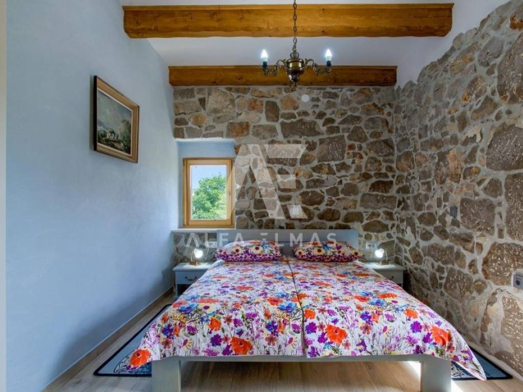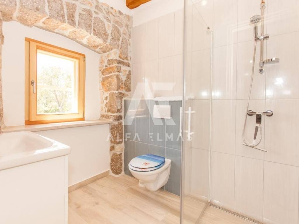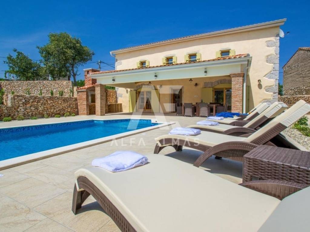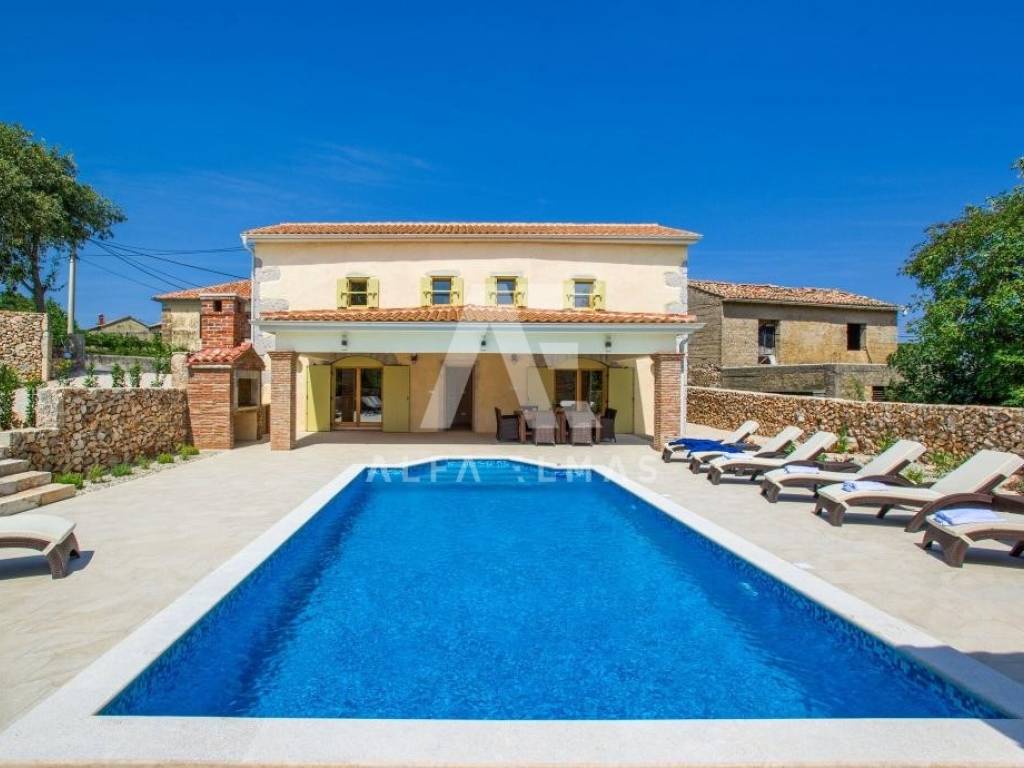 Vrbnik, surroundings, detached beautiful stone villa built in 1934, adapted and fully equipped in 2016, living area 144m2 with a spacious and fully fenced garden of 700m2, which further contributes to the feeling of intimacy. In the garden of the stone villa there is a swimming pool and a large barbecue, which makes it an ideal property for summer holidays or living. The stone villa is spread over two floors, ground floor and first floor. On the ground floor there is a fully equipped kitchen with high-quality kitchen appliances, a dining room and a spacious living room. The living room opens onto a covered terrace, an ideal place for socializing and spending bright summer evenings on the island. An internal staircase leads to the first floor where there are bedrooms, each of which has its own bathroom. The equipment of the property in the vicinity of Vrbnik includes high-quality ceramics, high-quality sanitary ware, air conditioners in the rooms and high-quality household appliances. The rustic style of interior design with stone-clad walls makes this beautiful villa in the vicinity of Vrbnik stand out as an ideal investment opportunity!