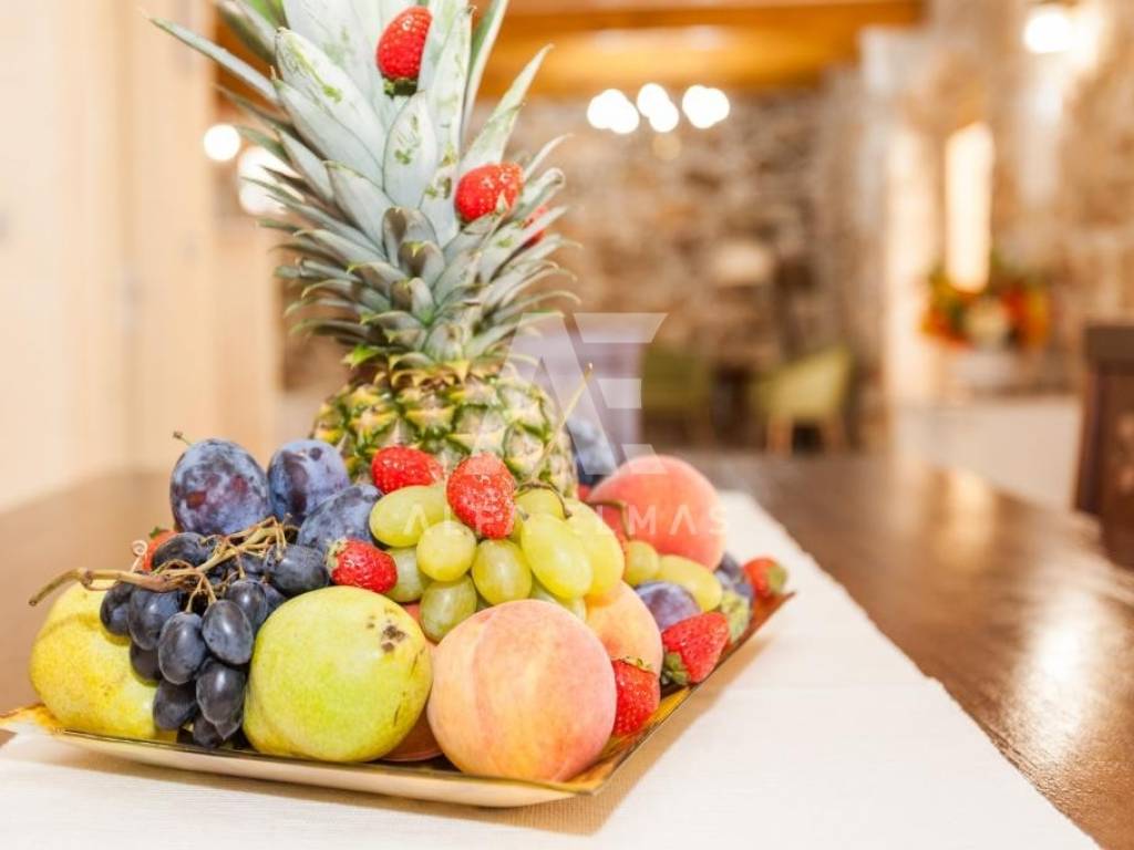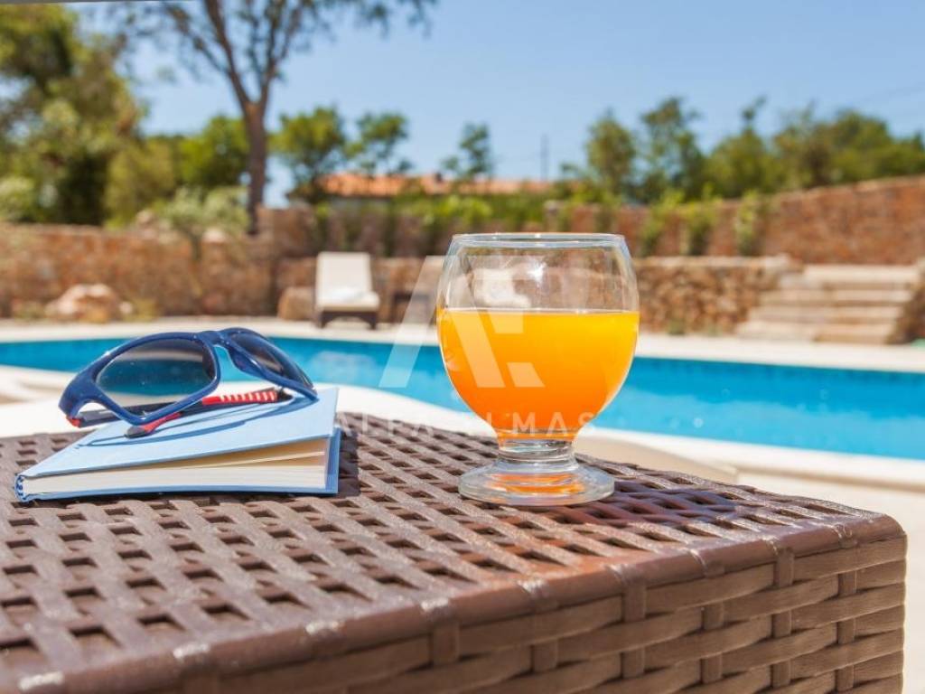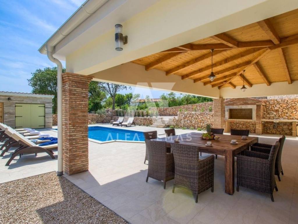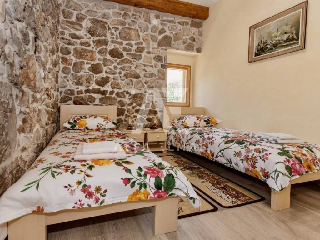 Vrbnik, surroundings, detached beautiful stone villa built in 1934, adapted and fully equipped in 2016, living area 144m2 with a spacious and fully fenced garden of 700m2, which further contributes to the feeling of intimacy. In the garden of the stone villa there is a swimming pool and a large barbecue, which makes it an ideal property for summer holidays or living. The stone villa is spread over two floors, ground floor and first floor. On the ground floor there is a fully equipped kitchen with high-quality kitchen appliances, a dining room and a spacious living room. The living room opens onto a covered terrace, an ideal place for socializing and spending bright summer evenings on the island. An internal staircase leads to the first floor where there are bedrooms, each of which has its own bathroom. The equipment of the property in the vicinity of Vrbnik includes high-quality ceramics, high-quality sanitary ware, air conditioners in the rooms and high-quality household appliances. The rustic style of interior design with stone-clad walls makes this beautiful villa in the vicinity of Vrbnik stand out as an ideal investment opportunity!