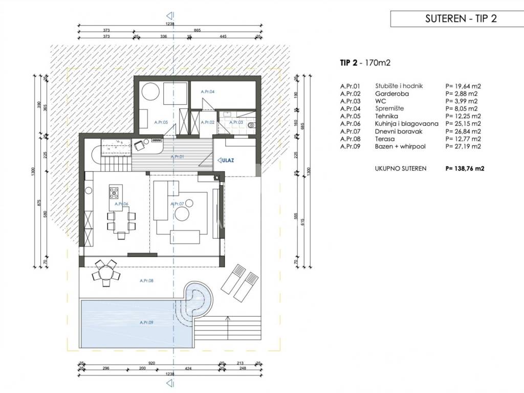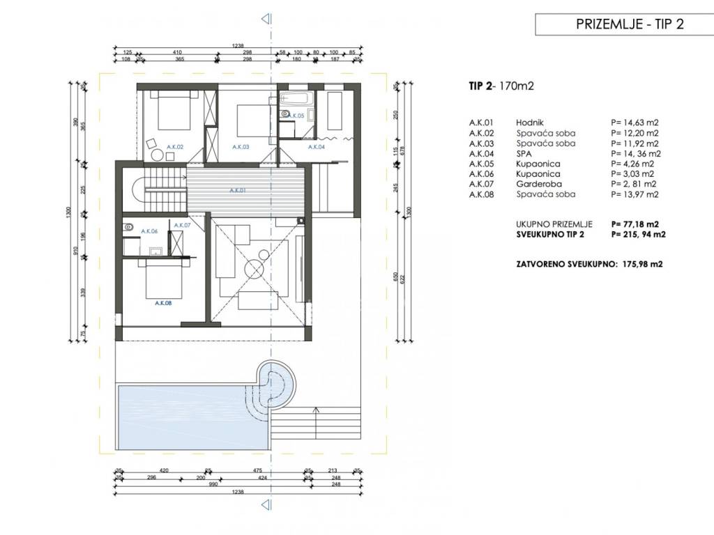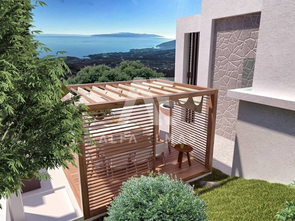 Opatija, surroundings, villa under construction with a panoramic view of the sea and the Kvarner coast. The property is located in a quiet place near the town of Opatija. It consists of a basement and a ground floor, which cover a total of 175m2 of living space. In the basement there is a spacious living room, which, together with the dining room and the kitchen, forms a whole. A large sliding wall with three-layer glass provides access to the terrace, sun deck and pool. In the basement there is also a toilet, a storage room, and a wardrobe. An internal staircase leads us to the ground floor, where there are three bedrooms, two terraces, a wardrobe, and two bathrooms and a spa. The property is equipped with high-quality materials and technology, including smart home management, floor and wall heating, a heated pool and a spa area with a jacuzzi. The property is 1500m from the sea, and is close to all the necessary amenities. The property also contains an alarm and video surveillance system and external sound system, a parking space for two vehicles with a built-in electric charging station. The documentation is in order.