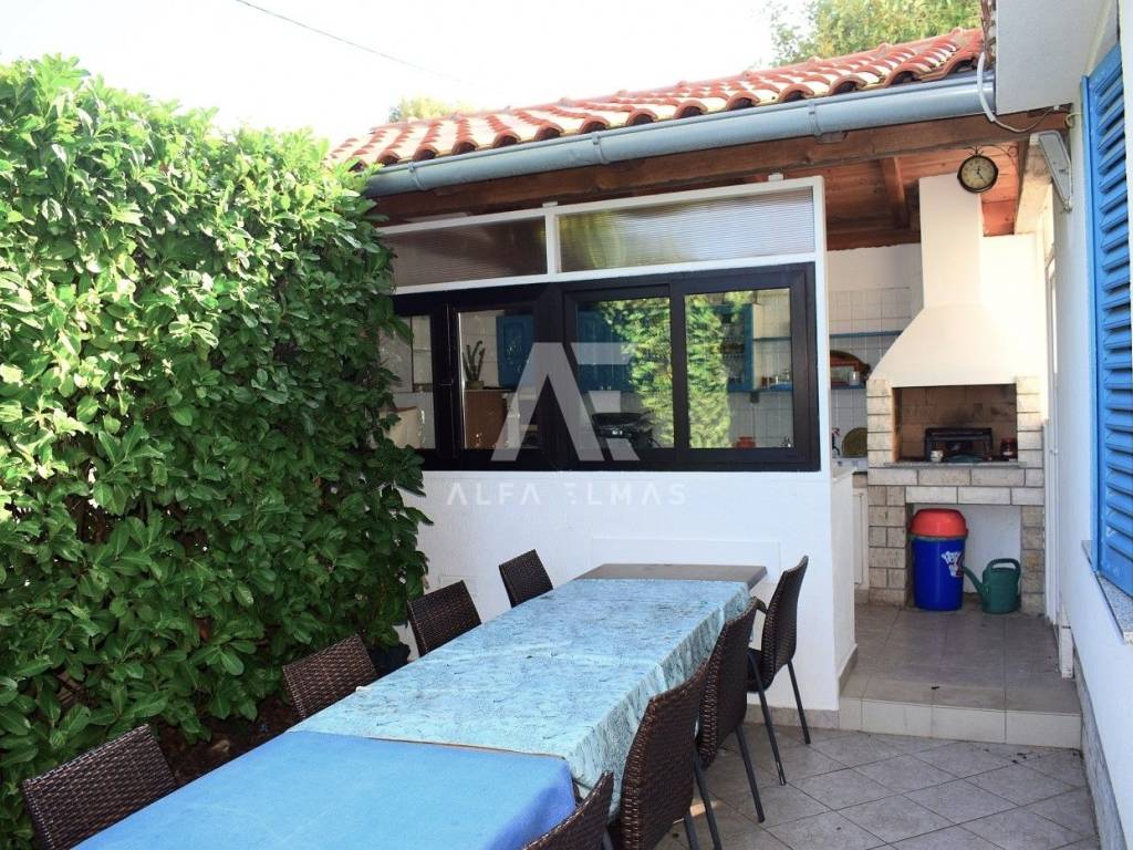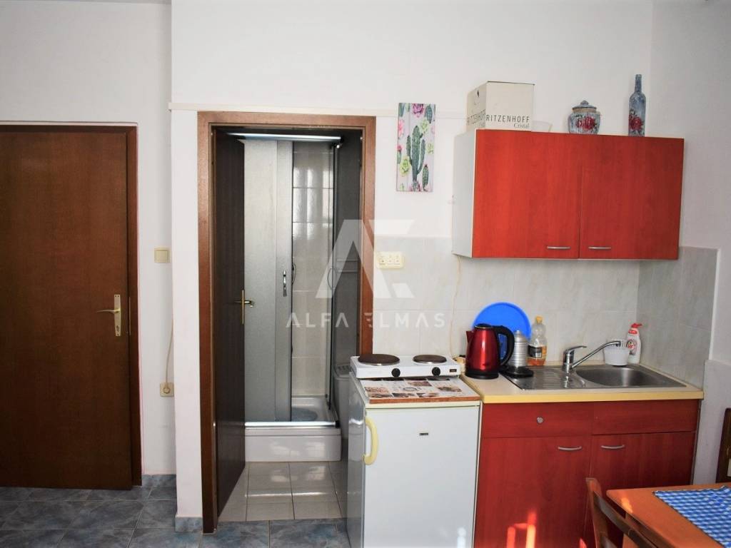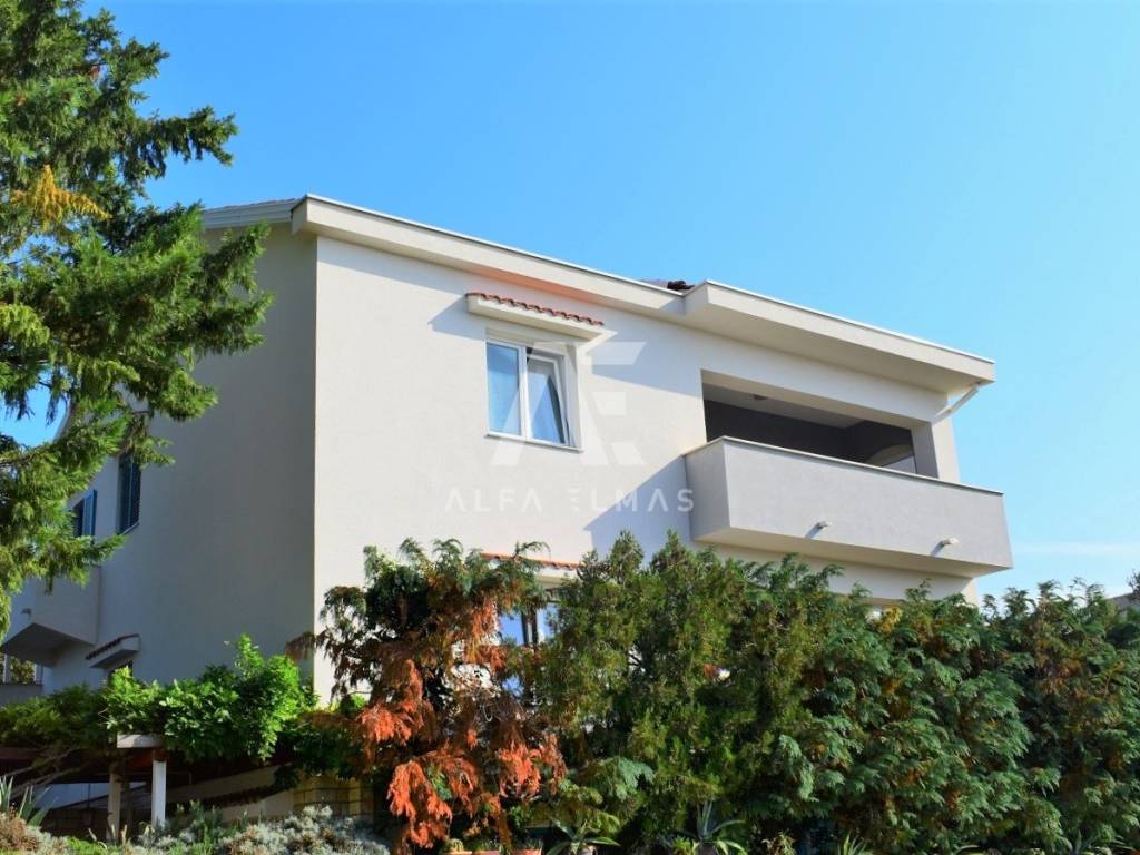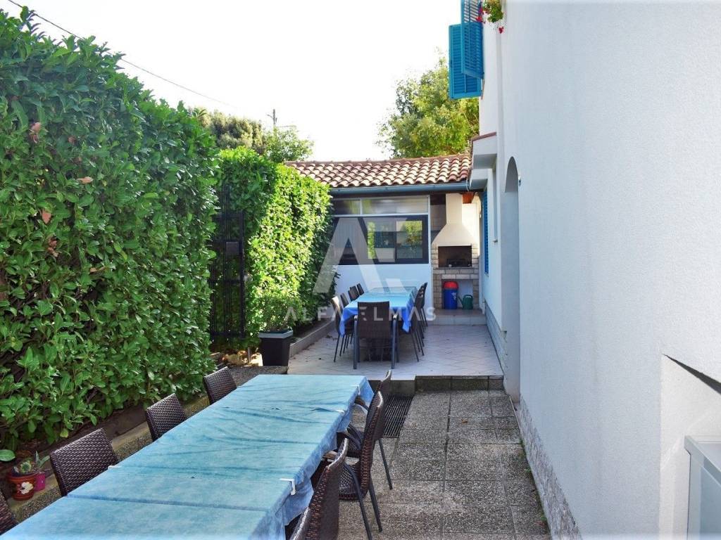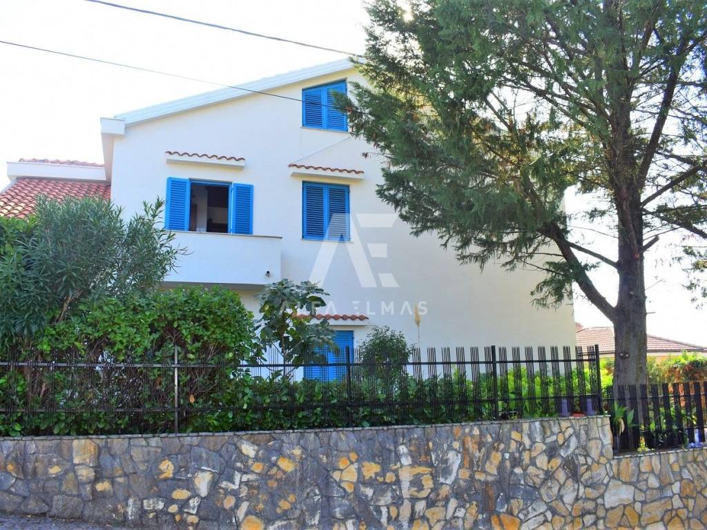 Krk, surroundings, detached apartment house with 8 apartments, total living area 400m2. The detached house is located in a small village near the town of Krk, only 800m from the sea and well-kept beaches. It consists of a one-room apartment in the basement and a studio apartment on the ground floor. On the ground floor there are also one one-bedroom apartment and one two-bedroom apartment. An external staircase leads to the first floor of the building where there are four apartments. Three one-bedroom and one three-bedroom. The first floor is connected by an internal staircase with a high attic where the bedrooms are located inside the apartment. The three-room apartment has access to a terrace with a beautiful panoramic view of the sea and the surrounding islands. The detached house contains a fully landscaped garden where there is a summer kitchen, a space for socializing, and the environment itself is beautifully decorated with Mediterranean plants. The house in the vicinity of Krk contains parking for a total of 9 vehicles and represents an ideal investment opportunity for the purpose of tourist rental. It is located near all necessary facilities. Documentation in order!