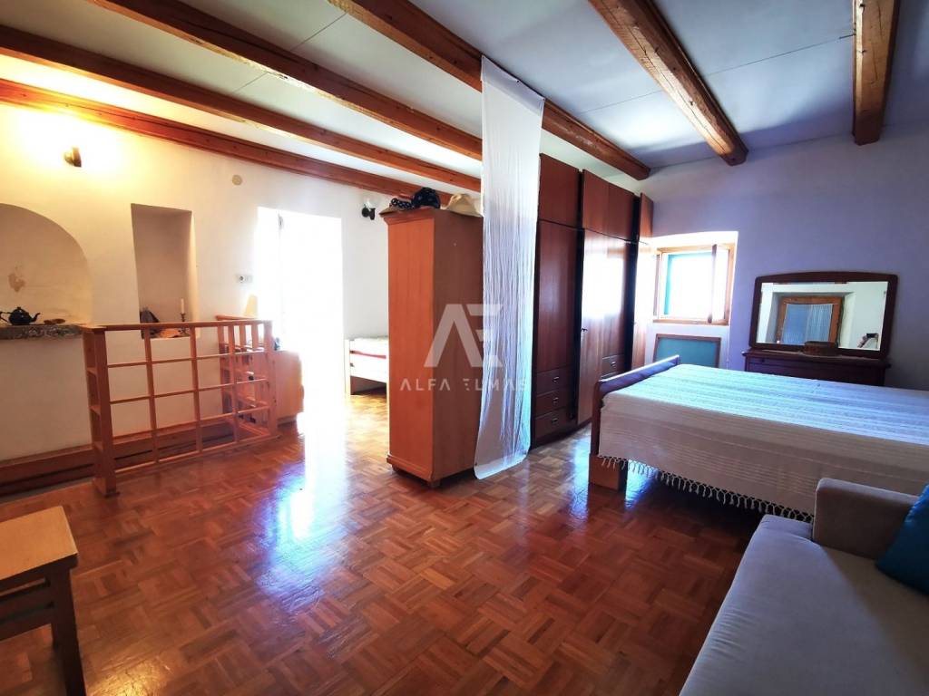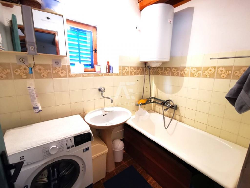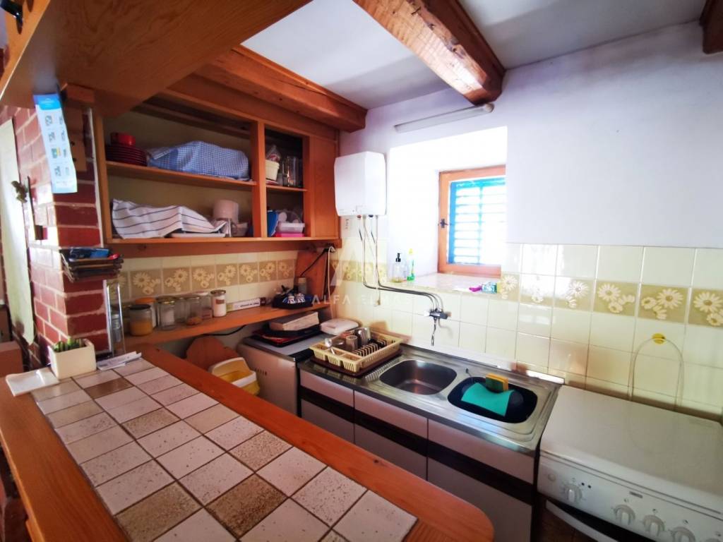 Kornić, an old stone house in a row with 70m2 of living space. The house has two floors, ground floor + first floor, on the ground floor there is a kitchen and a living room, as well as a bathroom and a toilet, internal stairs lead to the first floor, where there is a large room of 33 m2 divided into two bedrooms with access to a terrace of 8 m2. The house is habitable and fully furnished, it was completely adapted in 1973, and partly in 2021. Quiet location, approx. 1000 from the sea, beach and restaurants.