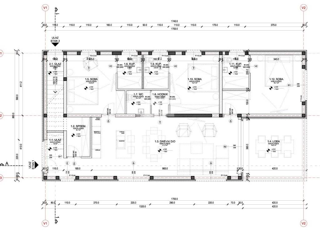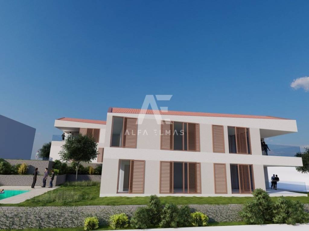 A detached villa with two apartments is currently under construction, the completion of the works is scheduled for March 2025. The building has a ground floor + first floor and is located on a plot of 510 m2.