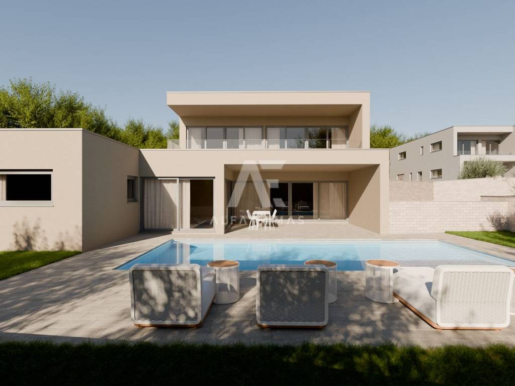 Krk, surroundings, semi-detached house with pool and sea view! Exclusive new construction! The semi-detached house located 1000 m from the sea is designed as a permanent residence or holiday home. The charm and style of this property is based on a combination of simple modern architecture and innovative technology. The choice of interior decoration plays an important role in the creation of this semi-detached house, so high-quality ceramics and sanitary ware, vinyl in the bedrooms, PVC joinery with ALU shutters and mosquito nets are provided. Air conditioners and underfloor heating connected to a heat pump will be installed in all rooms. An alarm system and video surveillance are used for additional security.