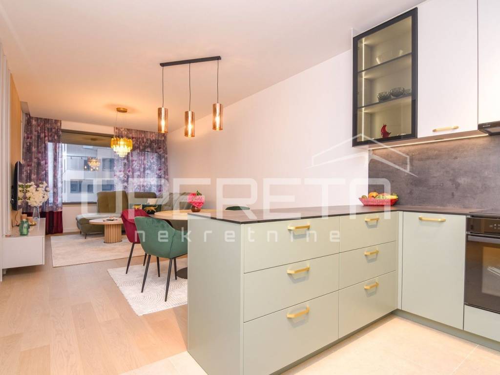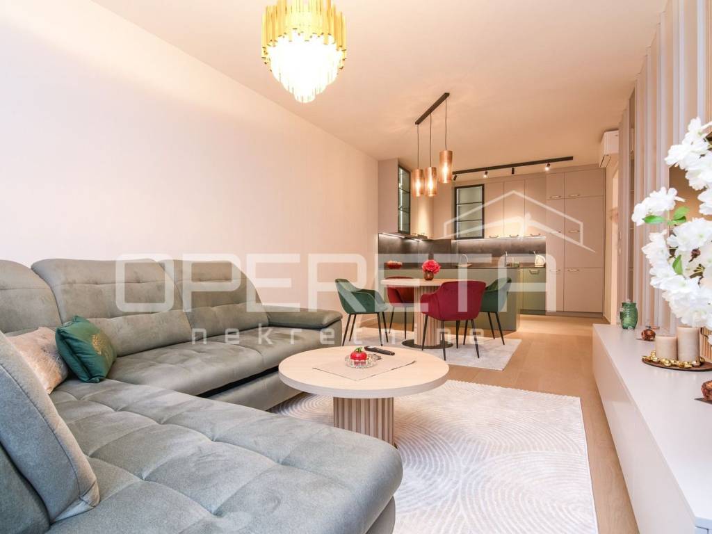 APARTMENT FOR RENT, ZAGREB, DONJE SVETICE, 71 m2, 3 bedrooms. Apartment in a new building from 2025. It consists of a hallway, bathroom with toilet, kitchen, dining room and living room with access to a loggia and two bedrooms. It has a garage parking space on the -1 floor (PGM 124), area of 12.71 m2. The apartment is fully furnished and equipped with all household appliances. Available immediately. It is located in a great location, close to all necessary amenities.