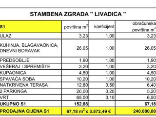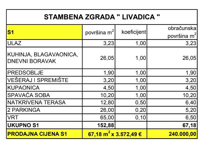 Prodaje se jednosoban stan s vrtom u novogradnji, mjesto Privlaka, 13 km udaljeno od grada Zadra. Jako lijepa lokacija, 100 m od pješčane plaže. Zgrada se sastoji od prizemlja i dva kata, na svakoj etaži po dvije stambene jedinice, na svakoj etaži po dva stana. Ukupno šest stambenih jedinica. Stan oznake S1 u prizemlju zgrade se sastoji od kuhinje s blagavaonom i dnevnim boravkom, predsoblja, vešeraja (spremišta), kupaone, spavaće sobe, natkrivene terase, vrta i dva parkirna mjesta. Ukupno etažna jedinica stana S1 ima 67,18 m2. Na zgradu se upravo stavlja fasada. Planirano useljenje je proljeće 2026. Dokumentacija uredna. Više informacija na upit.