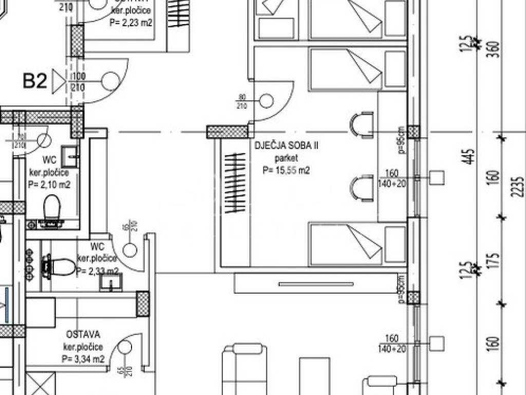 Stan oznake B2 nazali se u stambeno-poslovnoj zgradi na II.katu, ukupne kvadrature 140,86 m2 s obračunatim koeficijentom.