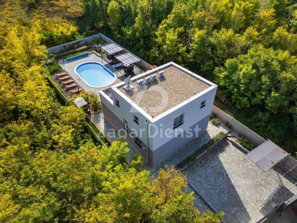 The house is built as a solid concrete structure, with high energy efficiency, and has an A+/A energy certificate. It is located on a plot of land with a total area of ​​1,040 m², of which 528 m² is located within the construction zone, where the house and pool are located, while the remaining 512 m² is in the agricultural zone. The facility is equipped with a Vedar water purifier with a capacity of 5,000 liters, adapted for the daily stay of six to eight people.