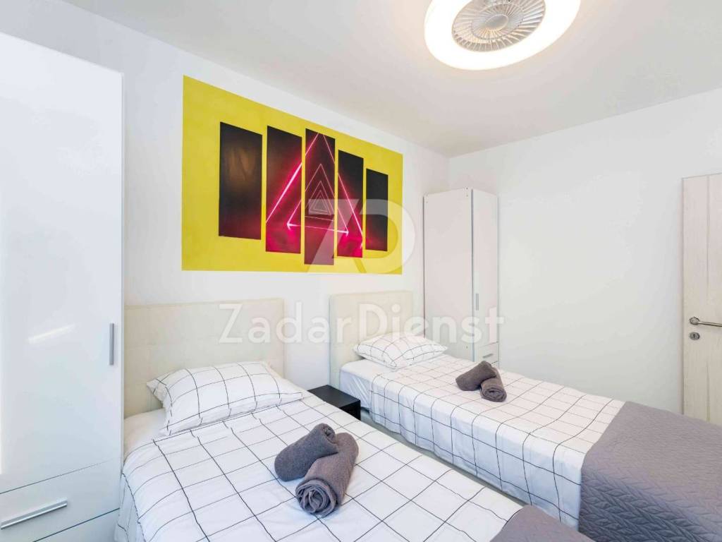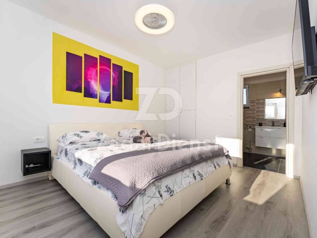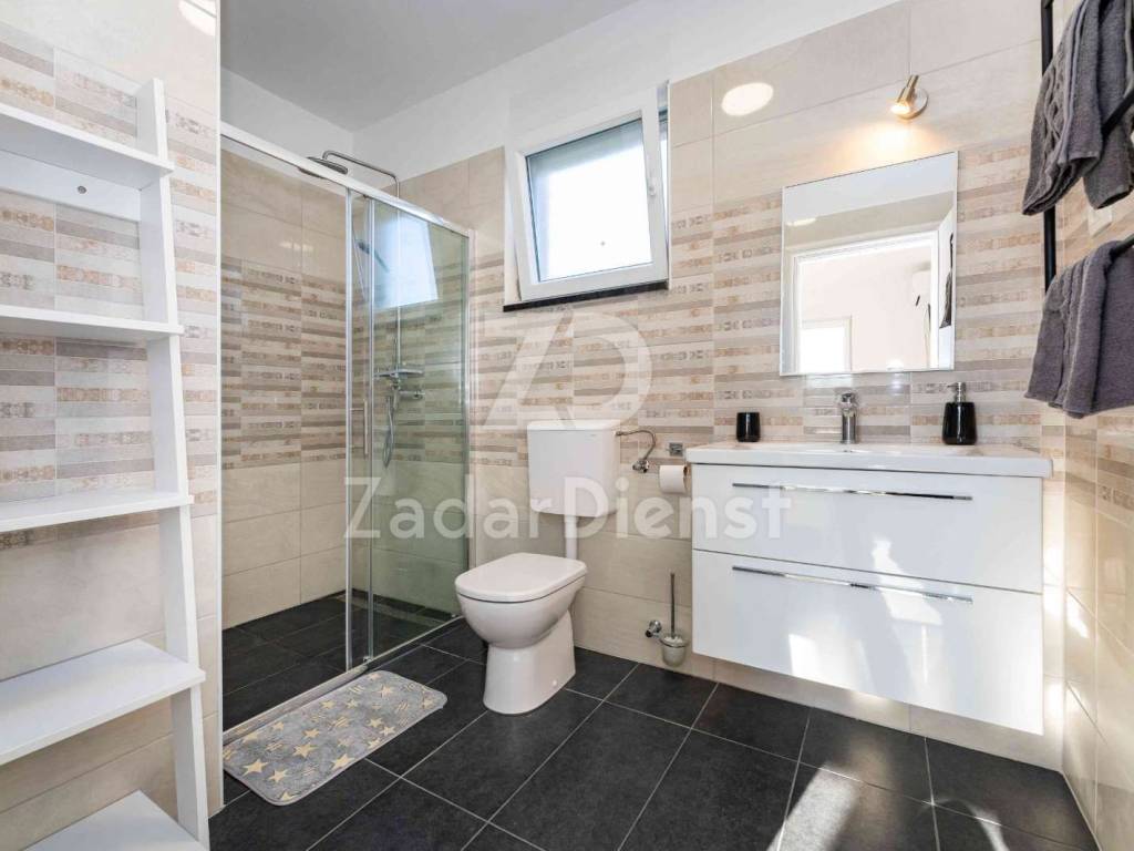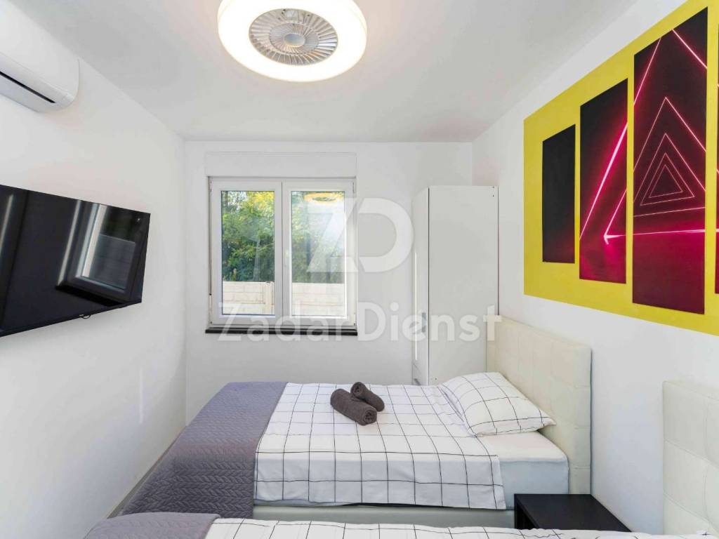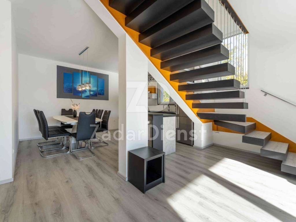 This luxury villa is located in an exceptionally quiet location in Privlaka, just 800 meters from the sea and the beach, and at the same time offers complete privacy and peace. Surrounded by Mediterranean greenery, the villa is spread over two floors and is ideal for family life or tourist rental. It is only a few minutes walk from the sea and the well-maintained beach.