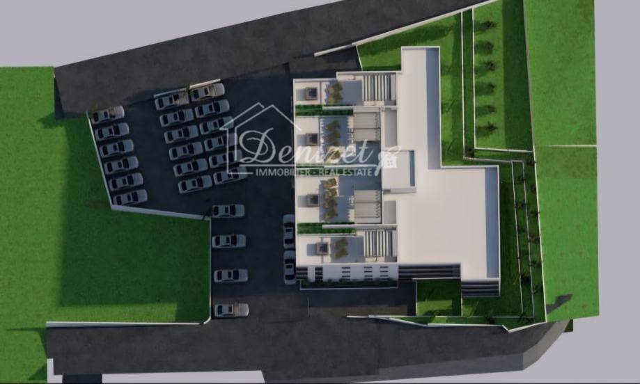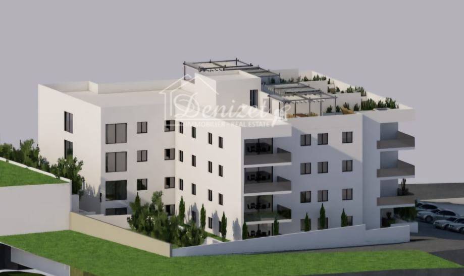 Apartments are available for sale in a newly constructed residential building in Okrug Gornji. The building consists of a total of 28 residential units arranged over four levels: basement, ground floor, first floor, and second floor.
