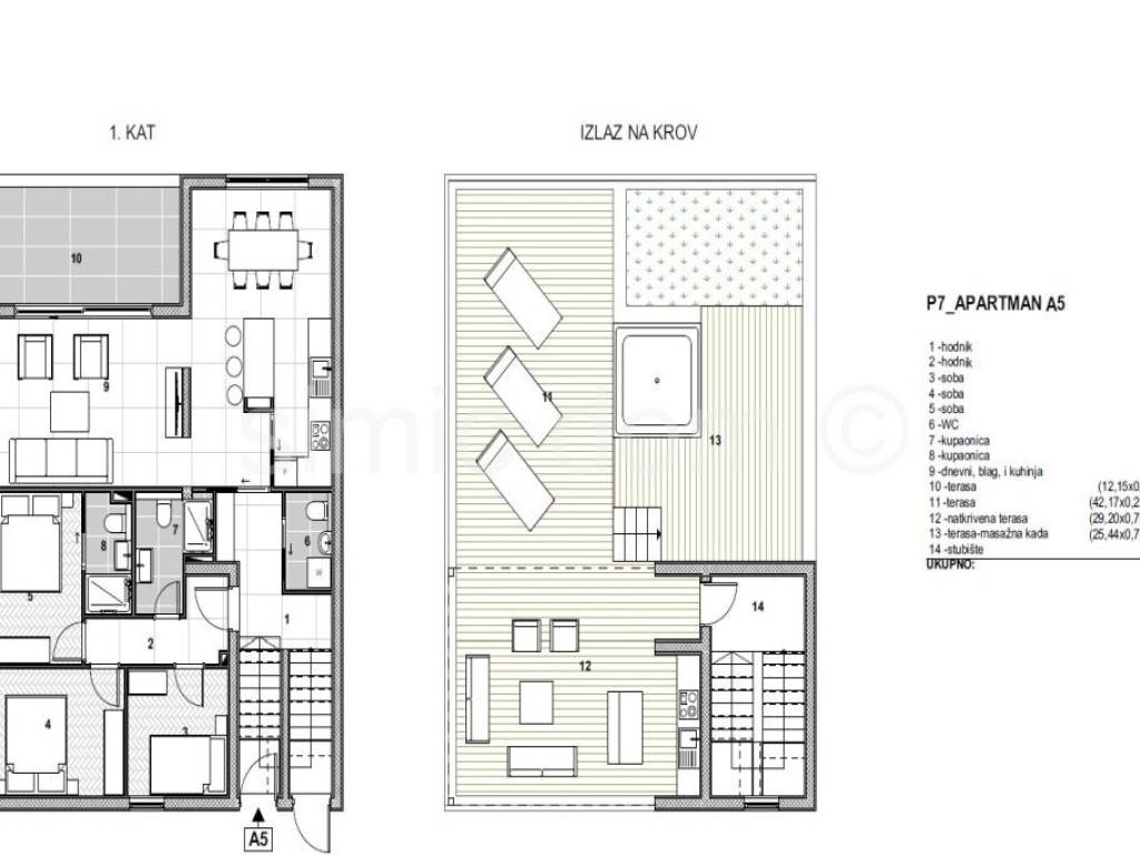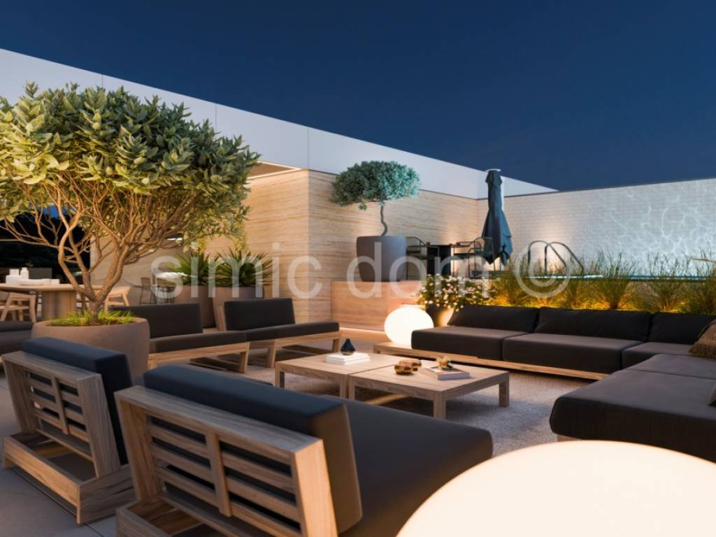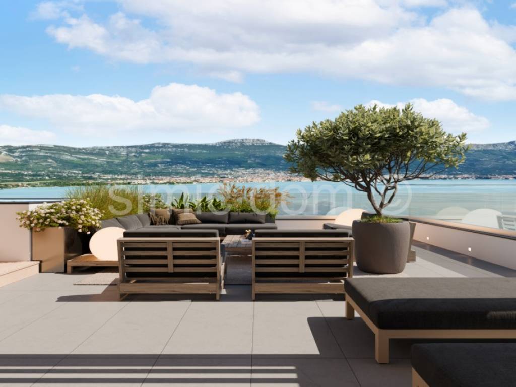 For sale is a beautiful spacious two-story apartment located in a modern complex of buildings, only 150m from the beach on Ciovo. The entire complex offers a beautiful view of the sea. Apartment A5 is located on the second floor of a smaller building. The total net area with coefficients included is 162.56 m2. The lower floor consists of a hallway, three bedrooms, one of which has its own bathroom, additional bathrooms and a toilet, a large living room with a dining room and a kitchen with access to the terrace. The stairs lead to the upper floor with a large roof terrace with a phenomenal view of the sea and the surroundings. The apartment has an outdoor parking space with the option of purchasing an additional parking space. The construction and equipment inside the apartment is of an extremely high-quality standard, and the investor also offers a service of furnishing the apartment and interior decoration according to the highest standards, with a modern design that meets the needs of buyers, as well as a service of managing the rental of the apartment. Investing with a guaranteed return is a key advantage of this project. The investor offers the possibility of renting out the purchased apartments for tourism purposes, taking over the complete management and hospitality services. In this way, the owners are assured of a return on their investment without the need to engage in operational activities, because everything is done on their behalf, which allows them to have a secure income from tourist rentals. This project is one of the first of its kind in the area, and similar concepts are successfully applied around the world, and this settlement represents a unique investment opportunity in an attractive location with great potential for generating tourist rental income and long-term property value.