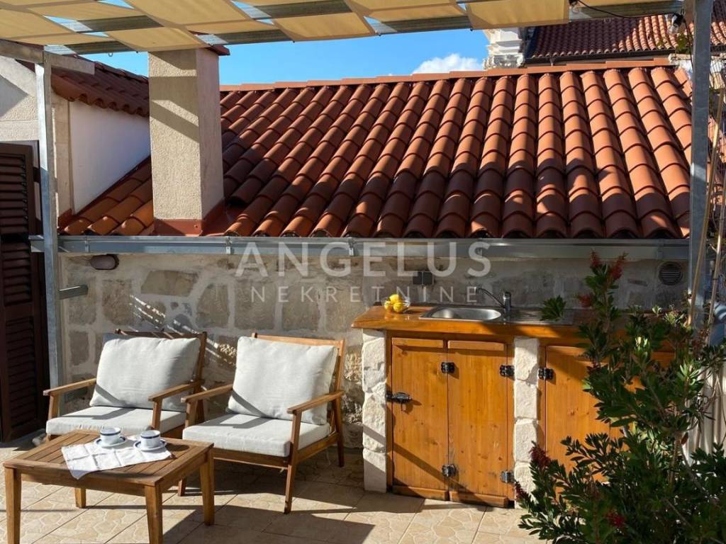A stone house for sale, completely renovated in 2014, with a total net area of 170 m2, while the total gross area of the house is 220 m2. It consists of four floors: ground floor, first and second floors, and an attic with access to a spacious terrace with a spectacular view of the sea and the Kaštela Bay.