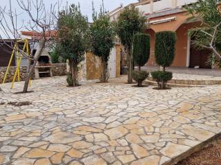 Kuća je u potpunosti namještena i klimatizirana, s kuhinjama po mjeri i uključenim aparatima. Uređeno dvorište popločano prirodnim kamenom nudi 4 parkirna mjesta, vrt s biljem i roštilj.