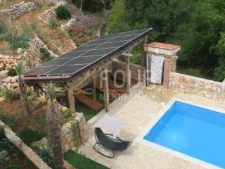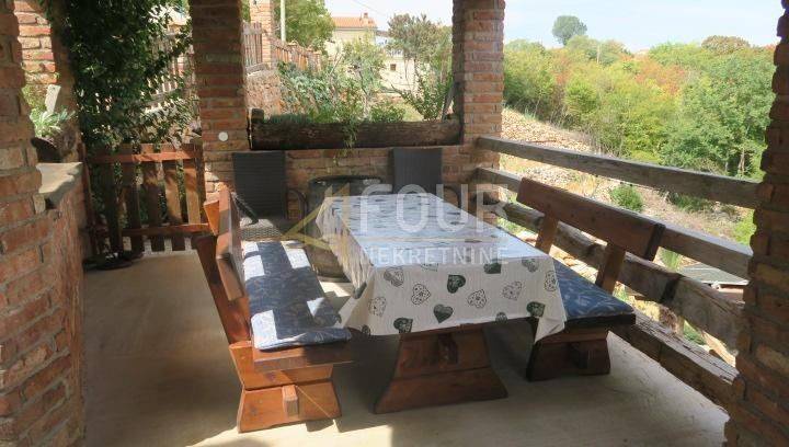 The offer is a detached house with a heated pool and a 5.28kw solar power plant and a large garden of 1,848m2. The house is divided into two floors, the ground floor is furnished and the upper floor is for furnishing with the possibility of another apartment of 80 m2 and a large terrace. On the ground floor is a 2-room apartment with a living room that has access to a covered terrace with a barbecue and a summer kitchen.