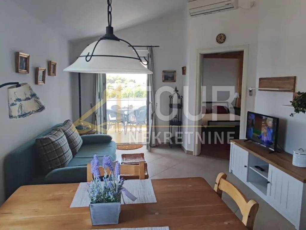 A 44.91m2 apartment for rent in Medulin, surrounded by greenery and only 150m from the sea! It is very neat and is located in a residential building of a newer building and consists of a kitchen with a living room, a bedroom, a bathroom, a closed balcony and two galleries. It has a southern orientation, so there is no shortage of daylight. It is equipped with air conditioning and PVC joinery. There is enough parking space near the building.