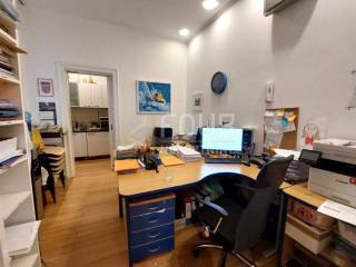 Furnished office space of 77m2 is for rent on the second floor of a residential-commercial building, ideal for all forms of office activities. The space consists of an entrance area, three spacious office rooms, a utility room, a kitchenette and a recently renovated bathroom. Each room is air-conditioned and equipped with quality office furniture, ensuring a pleasant and productive working environment. The building is located in an excellent location, just a 5-minute walk from Korzo, close to all necessary amenities. The space is fully furnished and equipped with security doors, providing security and functionality.