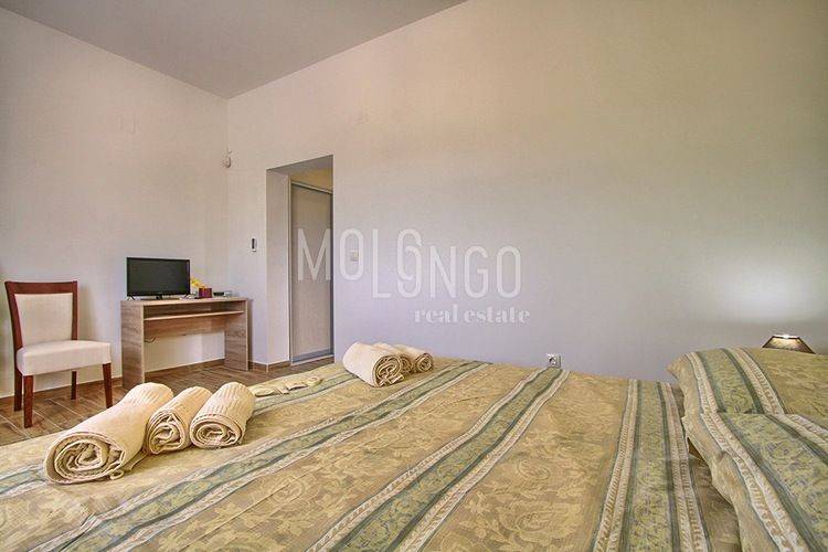 A bedroom with its own hall and bathroom (shower, bidet, toilet bowl, sink), equipped with its own air conditioning, SAT/miTV, safe; approx. 26m2, living room with kitchen and dining room - approx. 55m2, air conditioning, SAT/TV, vestibule for washing machine and tumble dryer, bathroom for guests or for people who may sleep on the couch in the living room (shower, toilet bowl, sink ) and exit to a covered terrace of 36m2 with a view of the pool and fireplace.