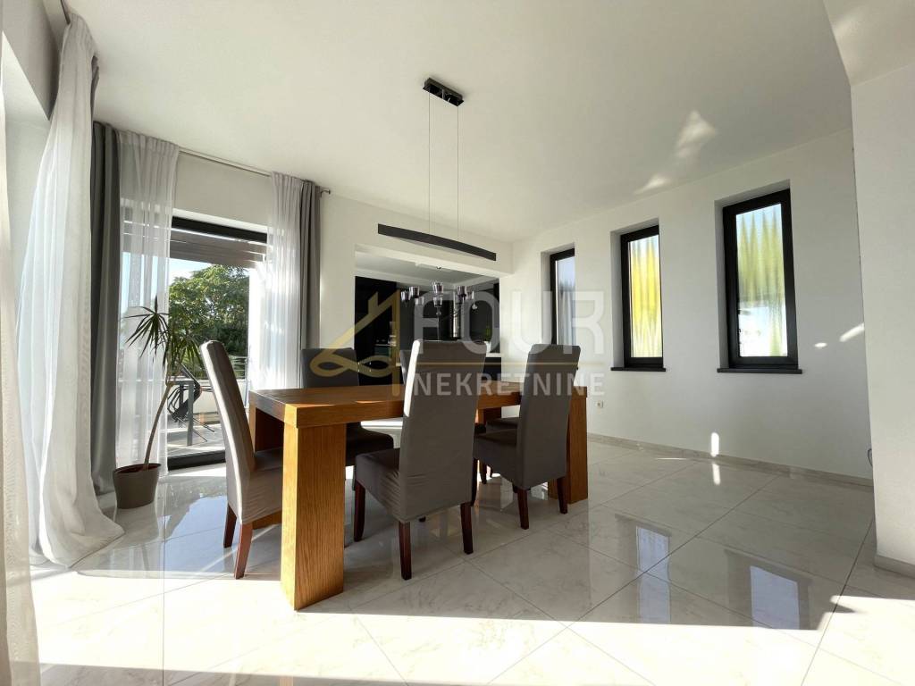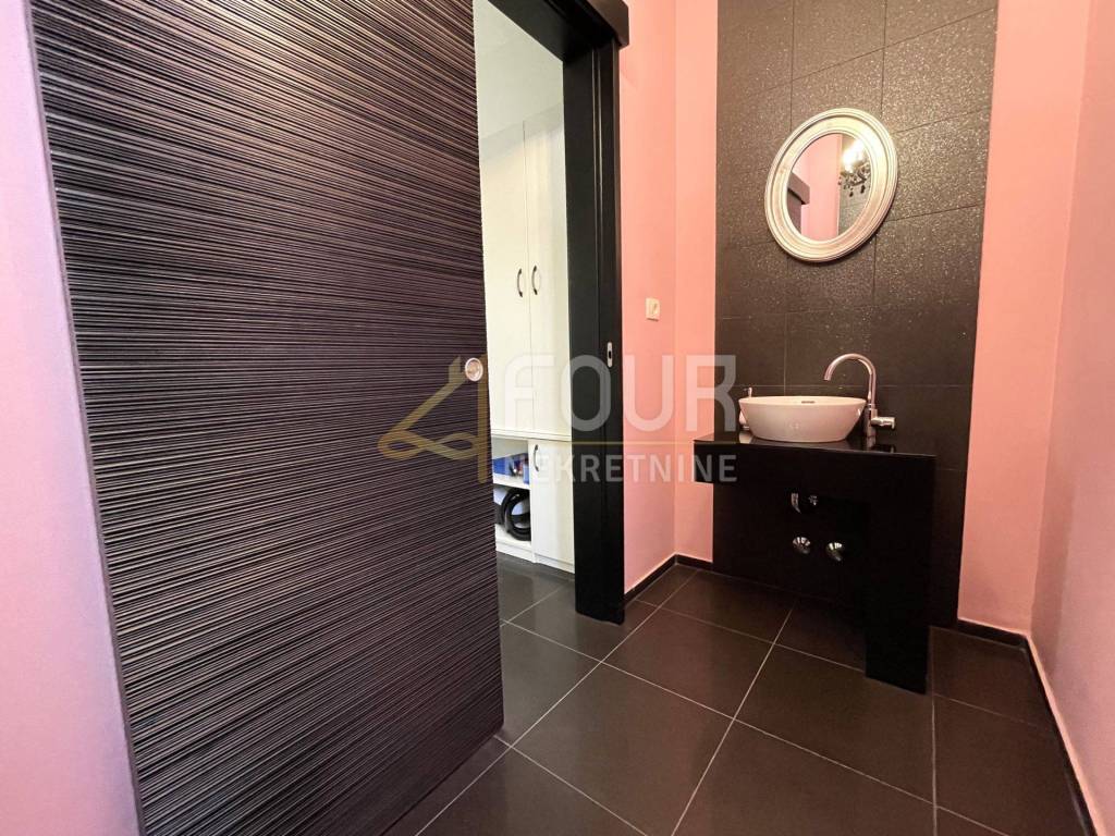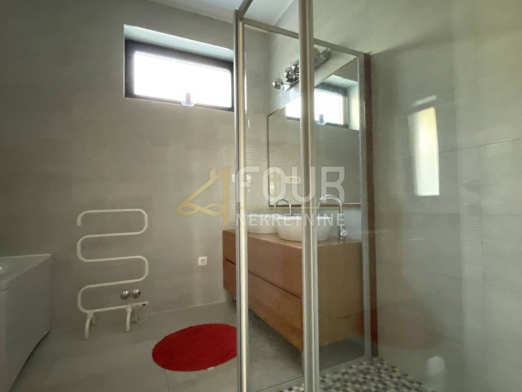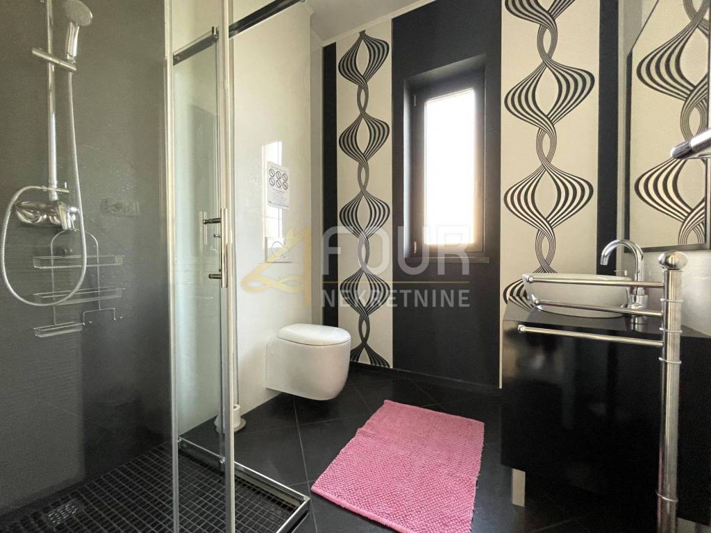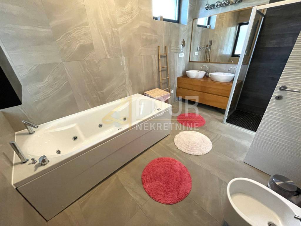 It consists of two spacious and comfortable apartments of type 3S+DB, each with a bathroom, a toilet, a storage room for a washing machine and a dryer, and a balcony that stretches along the entire length of the house. The living room, kitchen and two bedrooms have access to a spacious balcony and terrace. The apartments are decorated with high-quality furniture, and on the ground floor there is a swimming pool surrounded by a well-kept garden, ideal for enjoying the outdoors.