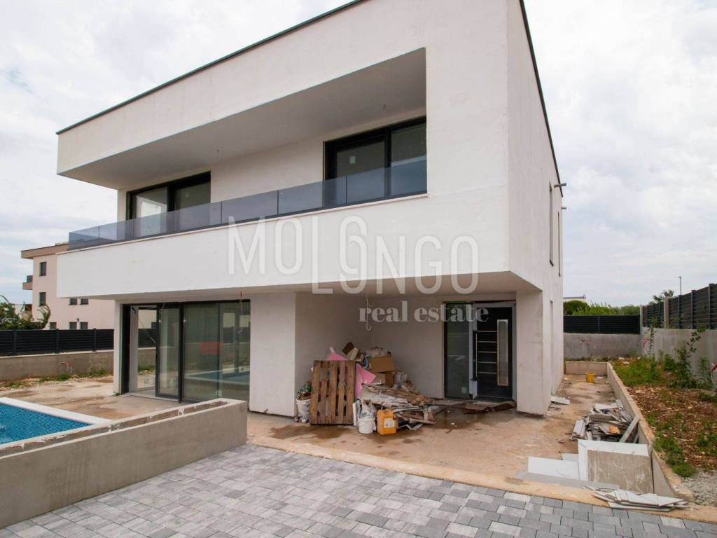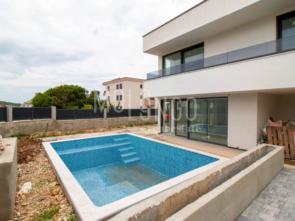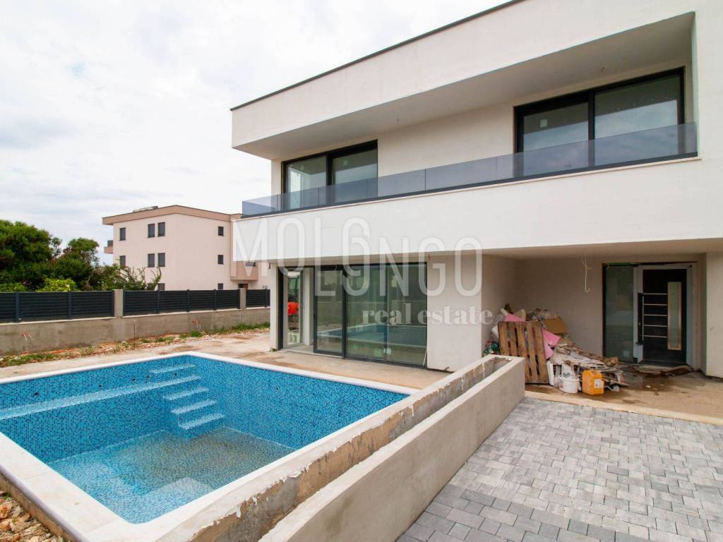 A luxury villa with a swimming pool is for sale, only 400 meters from the sea. The house is in the final stage of construction, and completion is expected by the end of summer 2024.