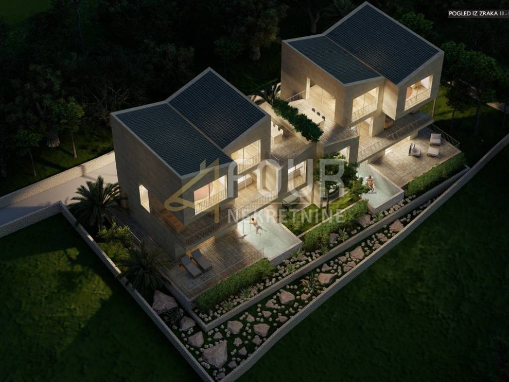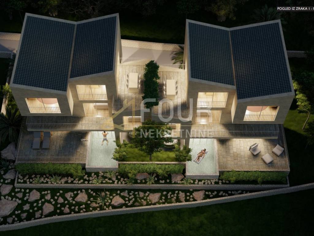 A modern semi-detached house is for sale – a luxurious multi-level apartment with a total area of 230 m², featuring a pool, garage, and approx. 200 m² of landscaped garden.