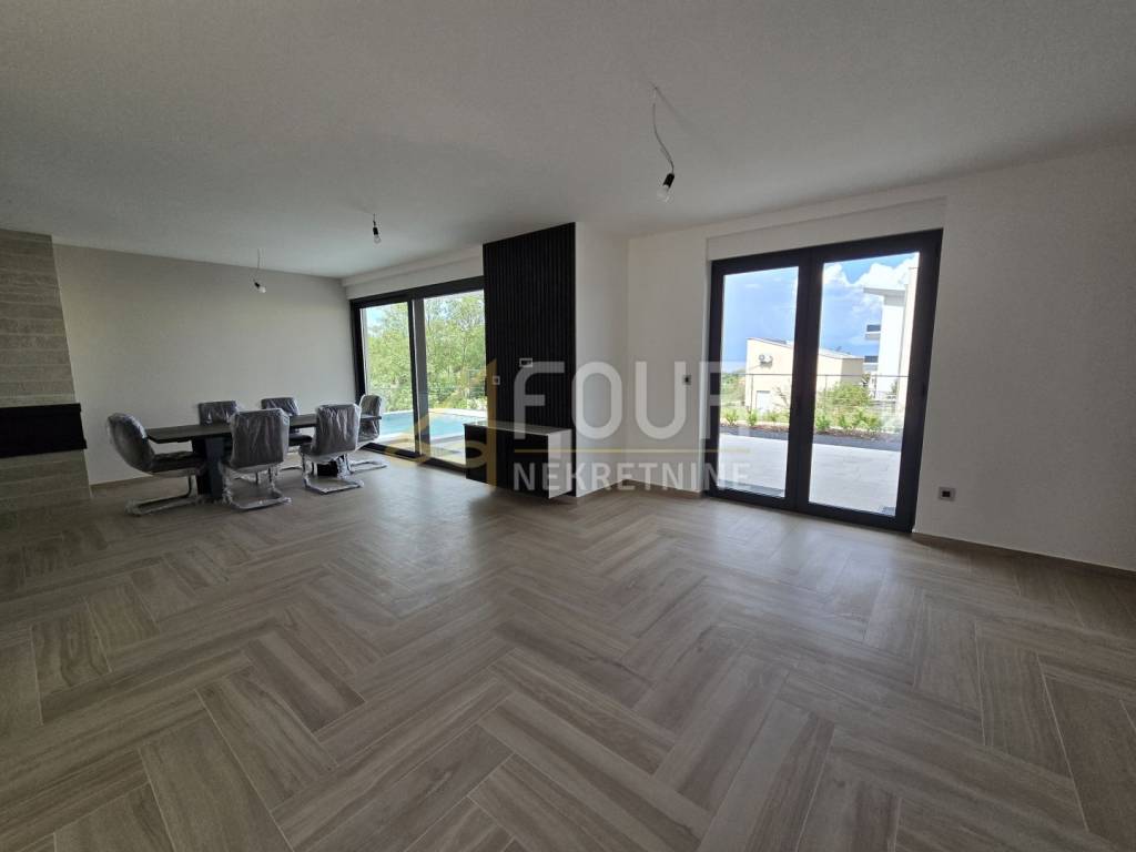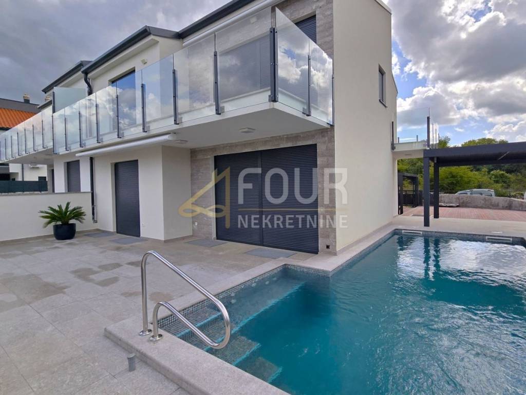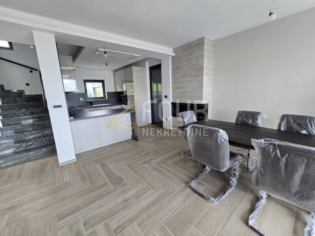 The interior is modern, furnished with high-quality furniture, and further comfort and convenience are ensured by underfloor heating, a heat pump, aluminum joinery, and electric shutters.