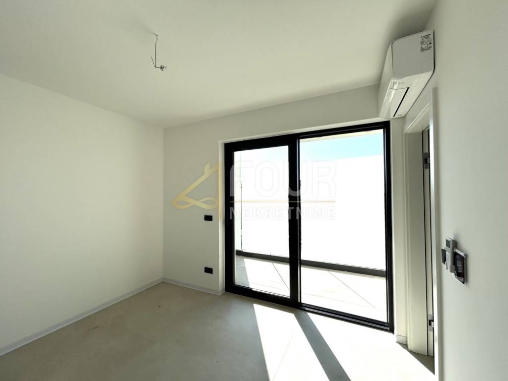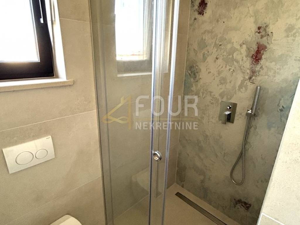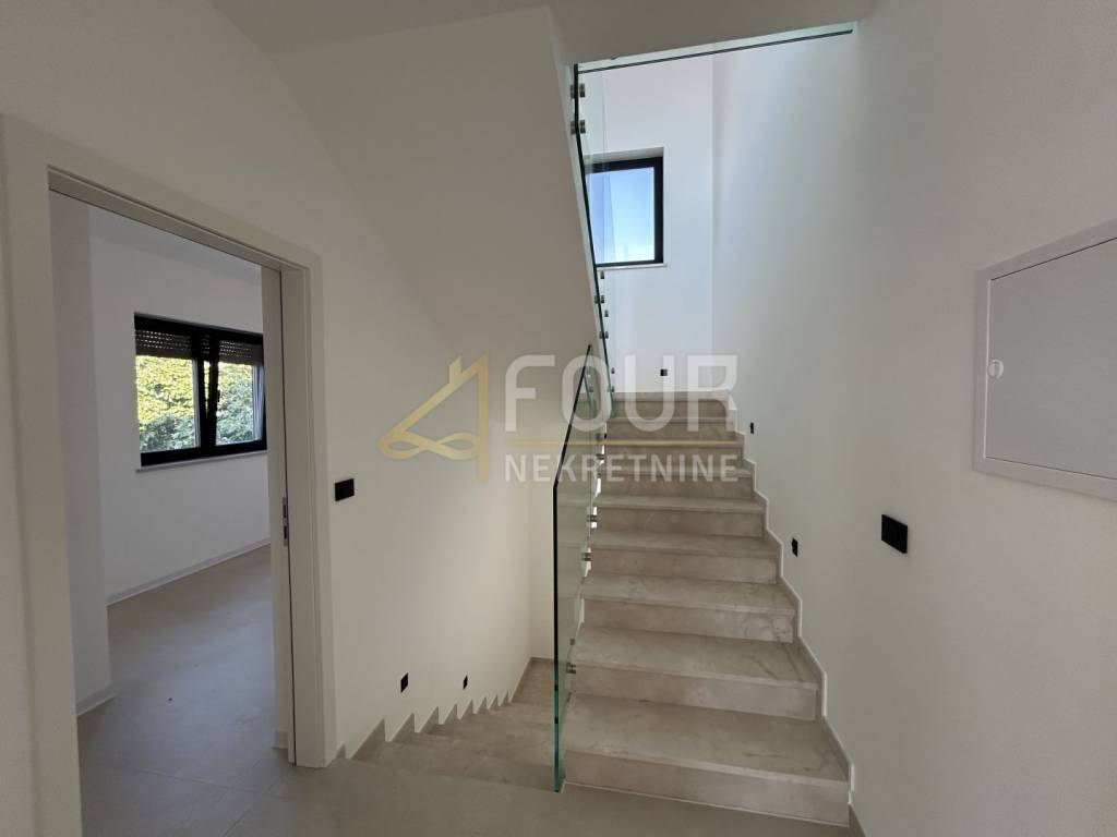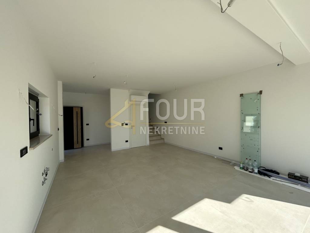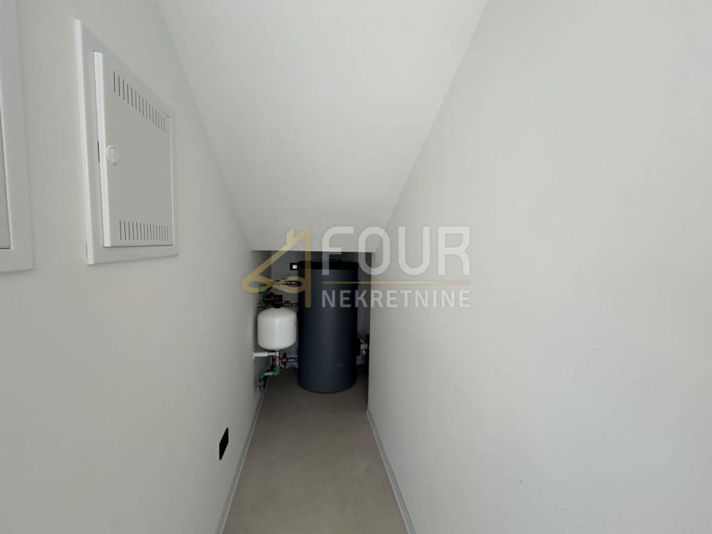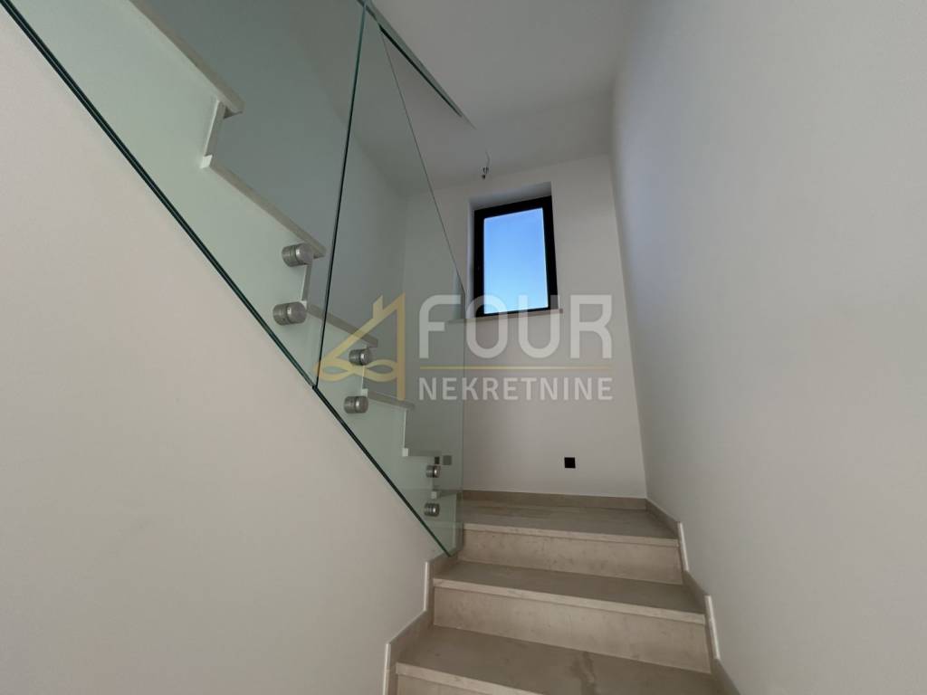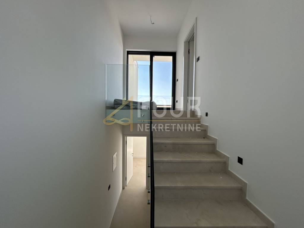 In Poreč, a three-story apartment in a new building from 2025 is for sale, with a total area of 141.38 m², a garden of approximately 150 m², terraces, and a balcony, offering a stunning sea view. The apartment, located at the end position, is designed with a highly functional layout. The ground floor features an entrance hall, a guest toilet, and a living room with an open-plan kitchen, while under the stairs there is a boiler room and storage space. On the first floor, there are two bedrooms with en-suite bathrooms, one of which has access to a terrace. The second floor offers an additional terrace with a jacuzzi and another bedroom with a bathroom, creating a perfect space for private relaxation.