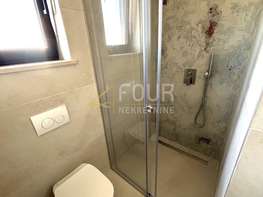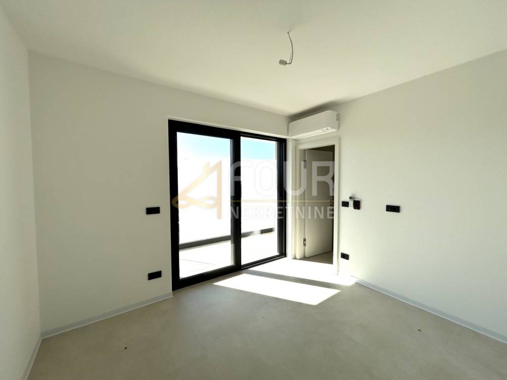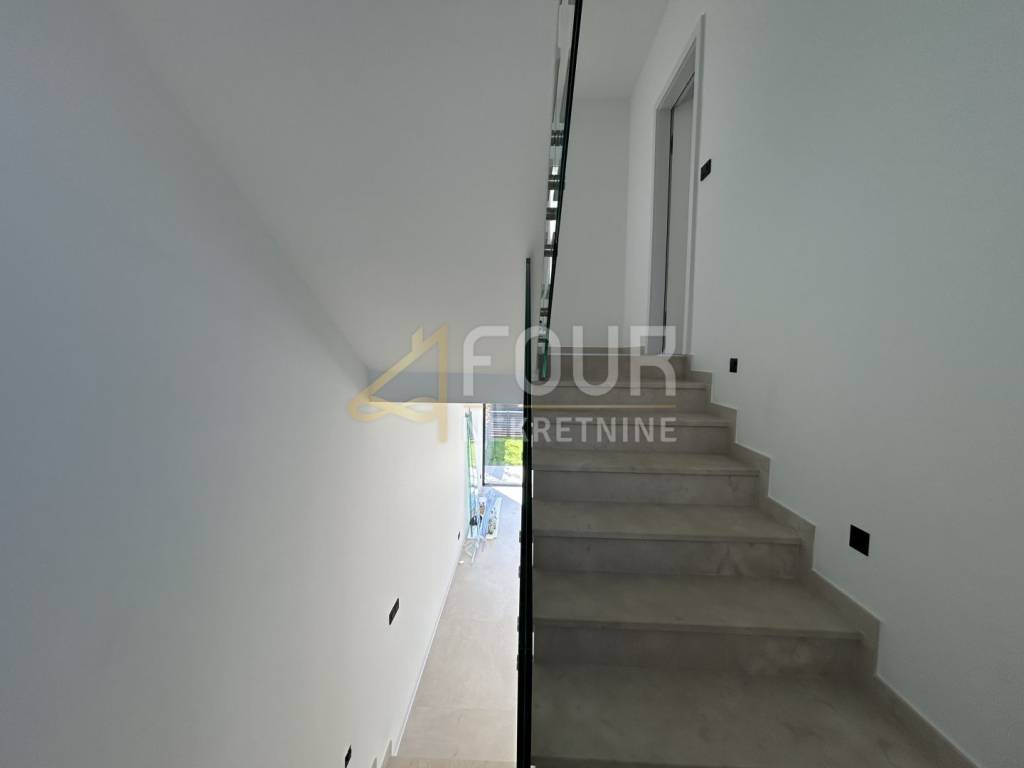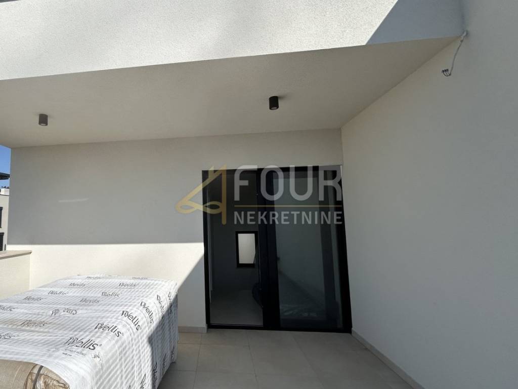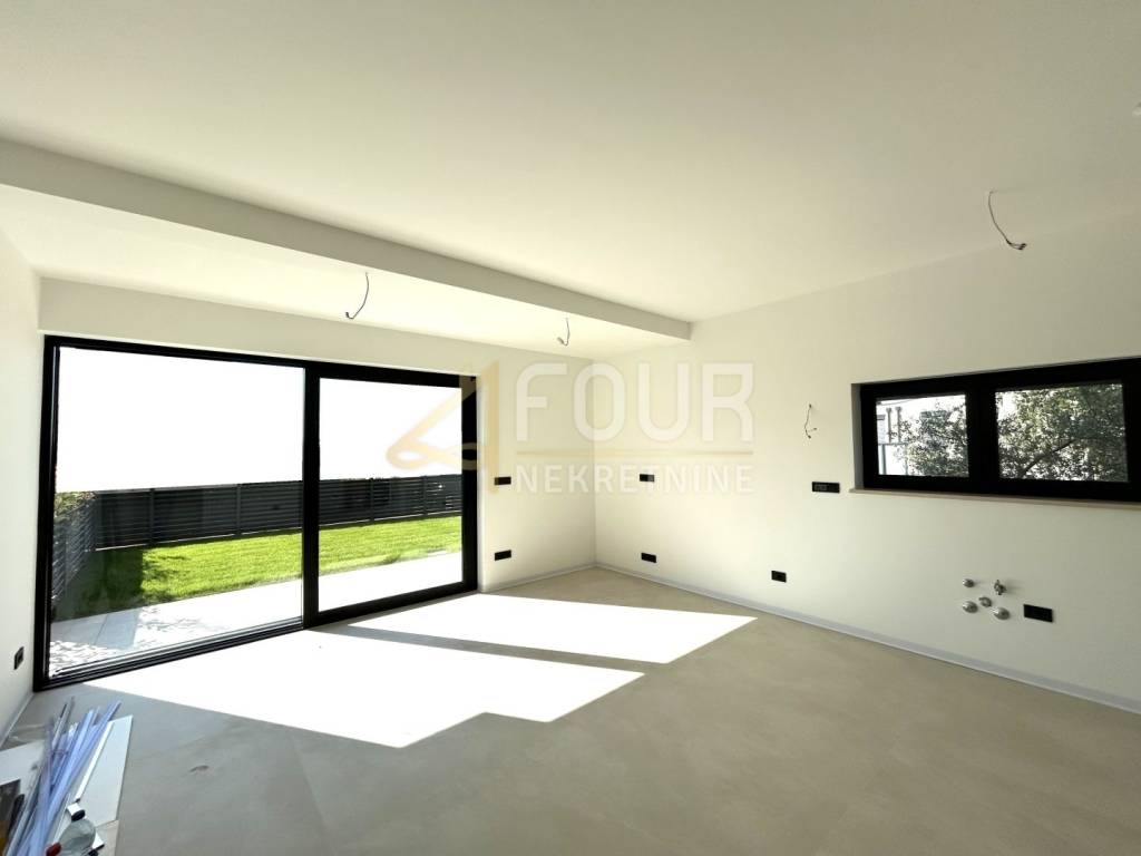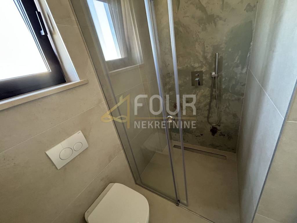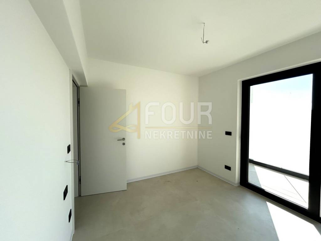 In Poreč, a three-story apartment in a new building from 2025 is for sale, with a total area of 141.38 m², a garden of approximately 150 m², terraces, and a balcony, offering a stunning sea view. The apartment, located at the end position, is designed with a highly functional layout. The ground floor features an entrance hall, a guest toilet, and a living room with an open-plan kitchen, while under the stairs there is a boiler room and storage space. On the first floor, there are two bedrooms with en-suite bathrooms, one of which has access to a terrace. The second floor offers an additional terrace with a jacuzzi and another bedroom with a bathroom, creating a perfect space for private relaxation.