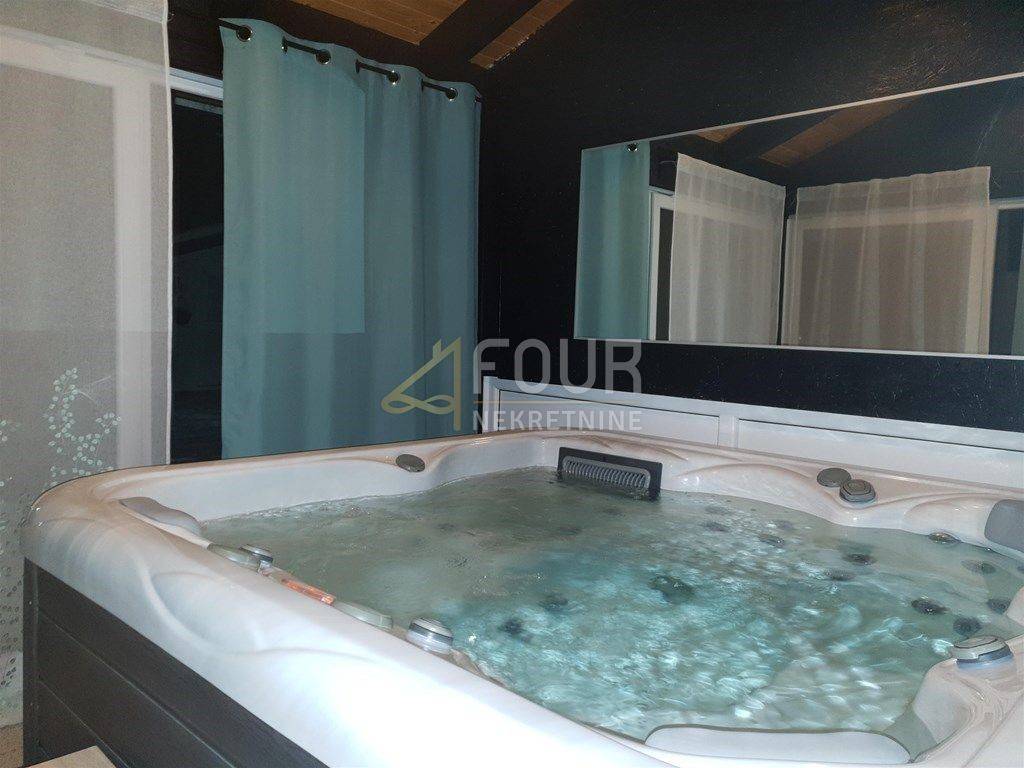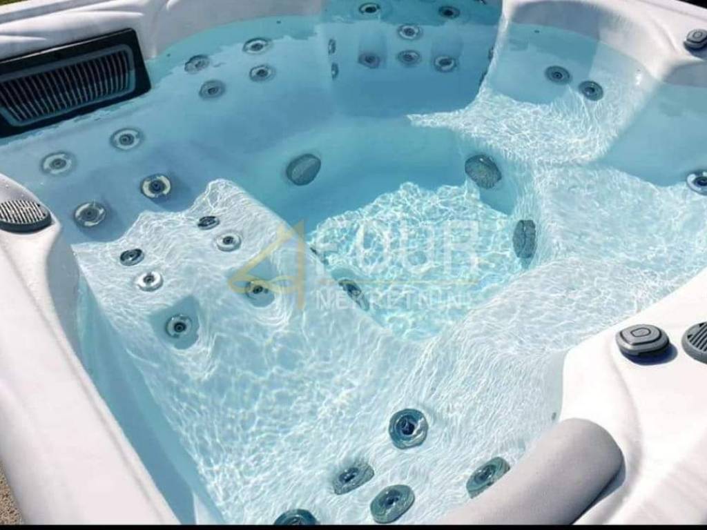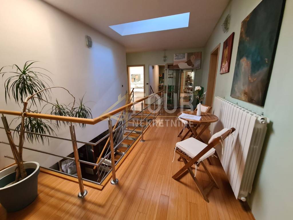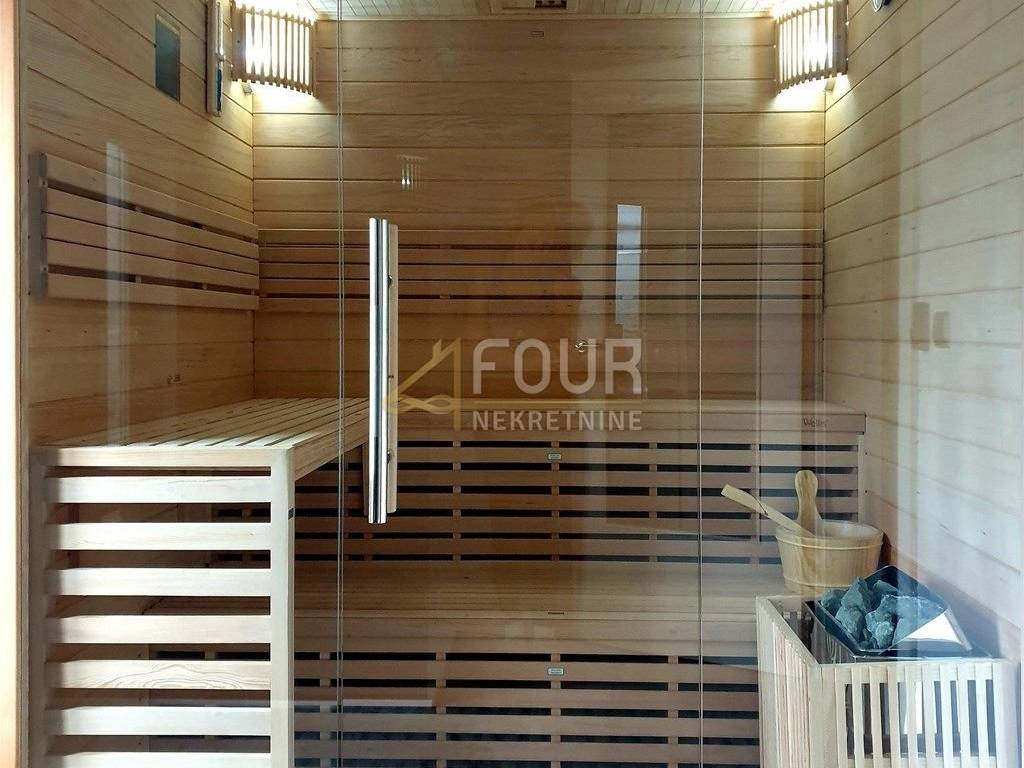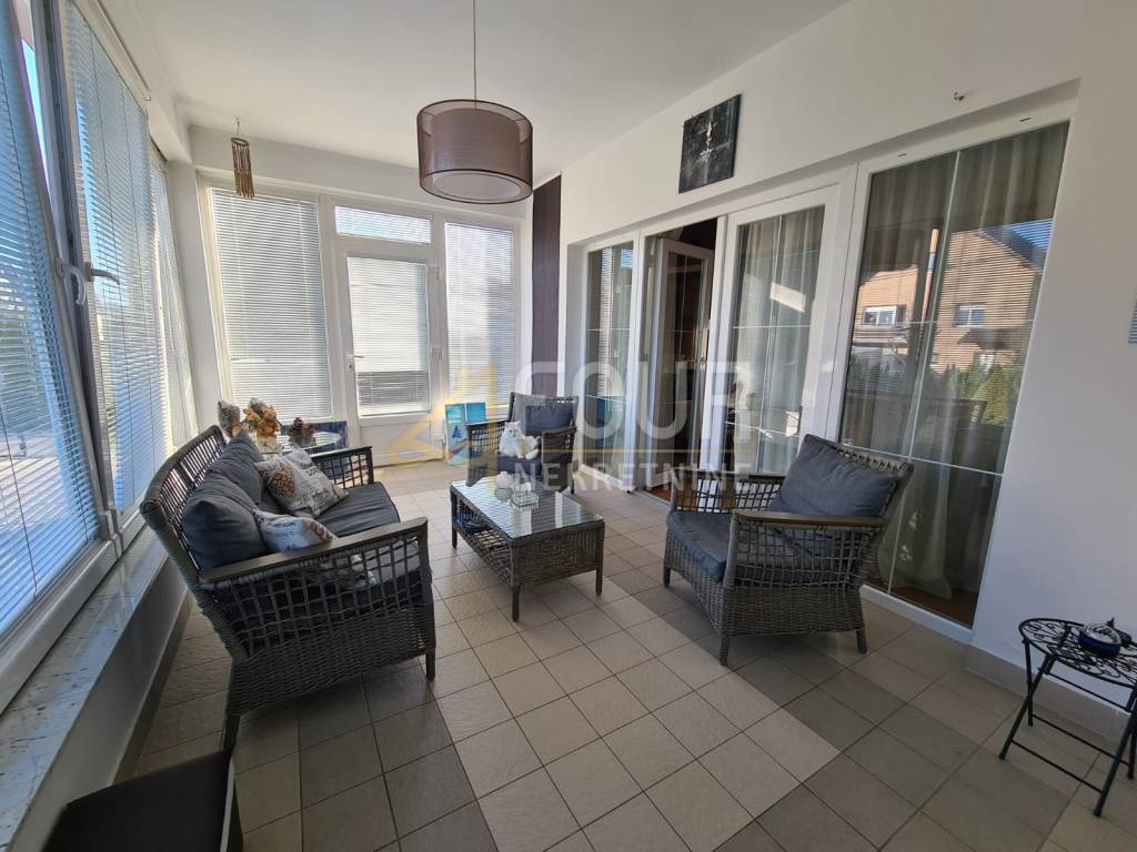 On the ground floor of the house there is a garage, hallway, kitchen, glazed conservatory, comfortable living room, bathroom, storage room, hallway with a gallery and a wellness area consisting of a Finnish sauna and an indoor jacuzzi.