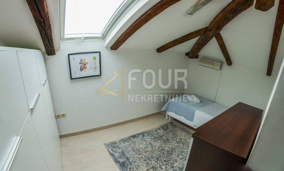 We offer an apartment near the beaches and the sea in Pećine. It is located in an excellent location, has a view of the sea, and all services and facilities are available nearby. Namely, this apartment functions as a 3 bedroom + living room, with a total area of 54.50 m2 and has an attached woodshed. It is sold fully furnished, it was renovated a few years ago and equipped with PVC joinery and roof insulation was installed.
