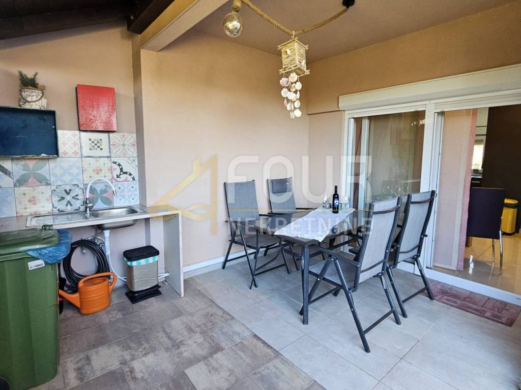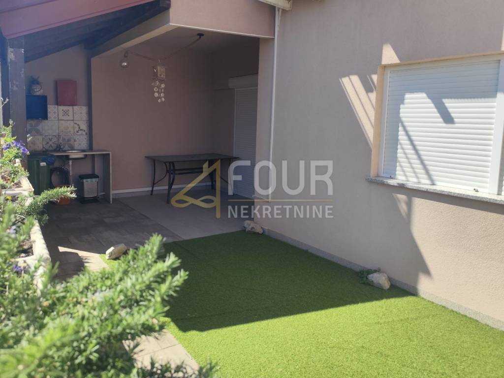 A two-story apartment for sale in Vir, located in the center, in a terraced house, with a separate entrance. It is fully furnished, very neat and little used, ideal for a family or as an investment. The total area of ​​the apartment is 79.88 m2, and the garden is 56.54 m2, with an additional balcony and terrace.